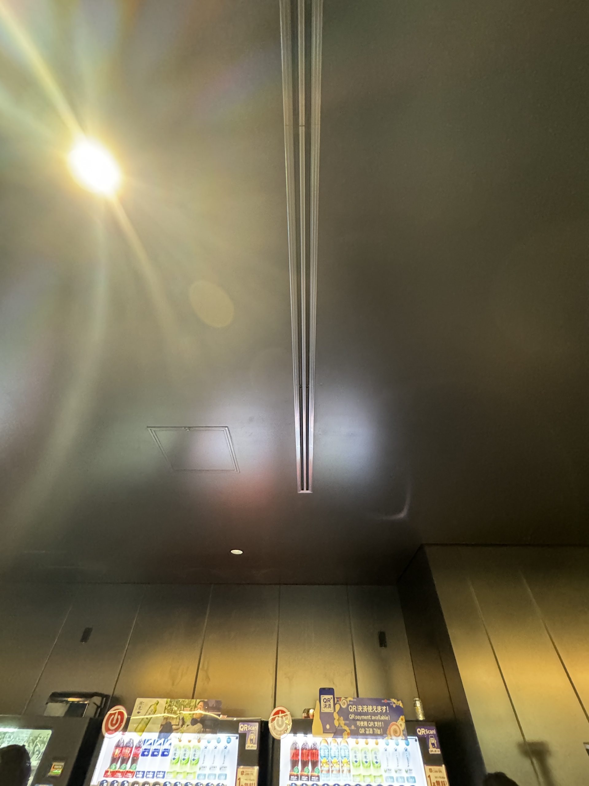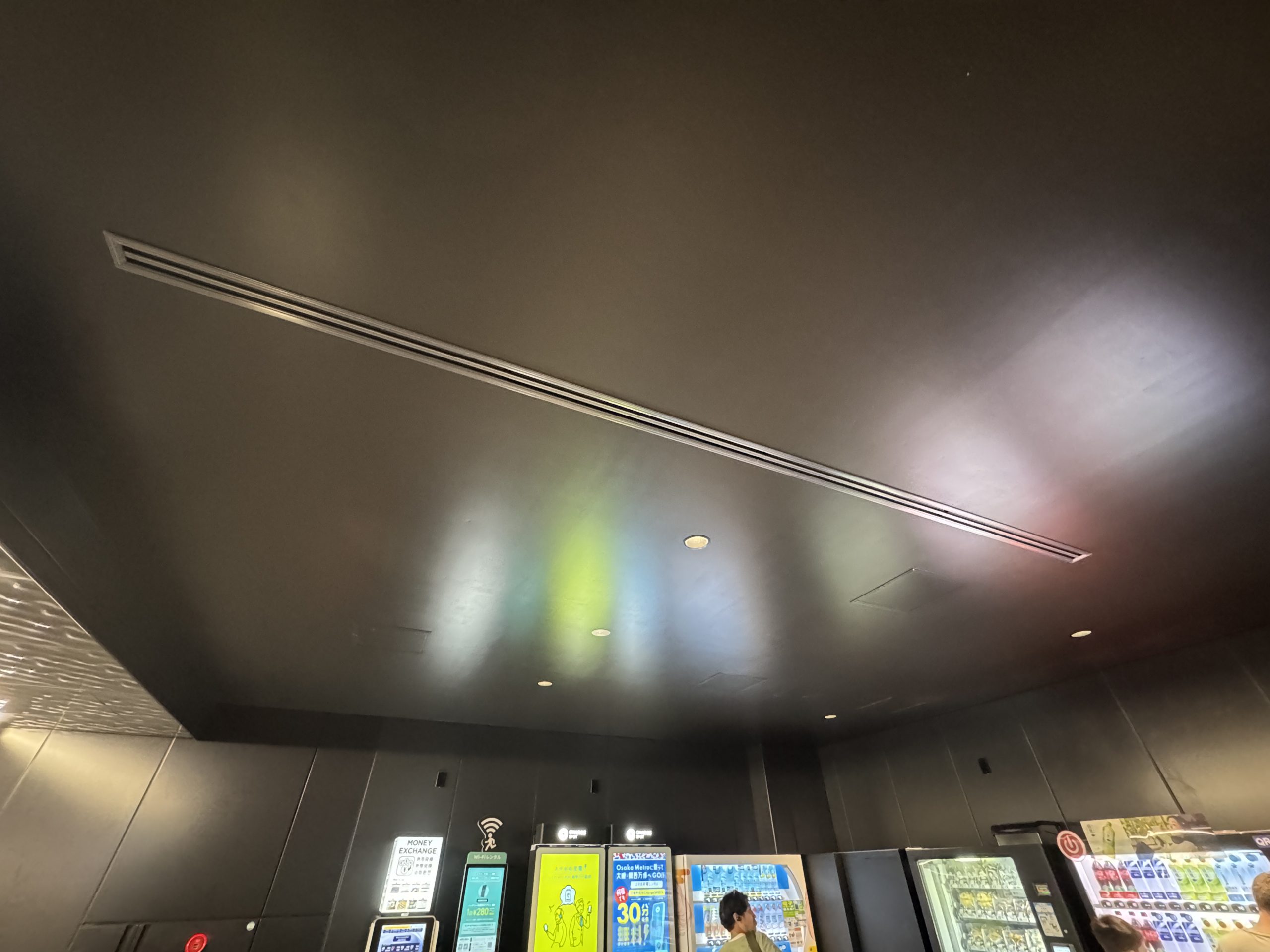そのローソンの横には複数のドリンク自動販売機があるのですが、そのあたりの天井から、涼しい風が出ているのです。冷房です。