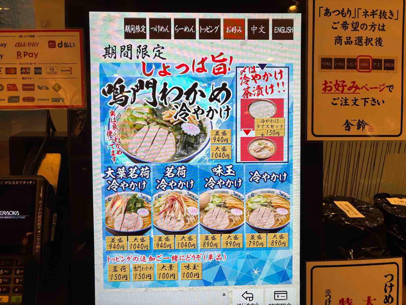 “舎鈴”は“六厘舎”のグループが展開するつけ麺チェーンで、現在112店舗を展開(2025年7月20日現在)。看板メニューはつけ麺だが、限定メニューも楽しく、夏は「冷やかけ」シリーズが大人気となっている。筆者も大好きで毎年食べている。