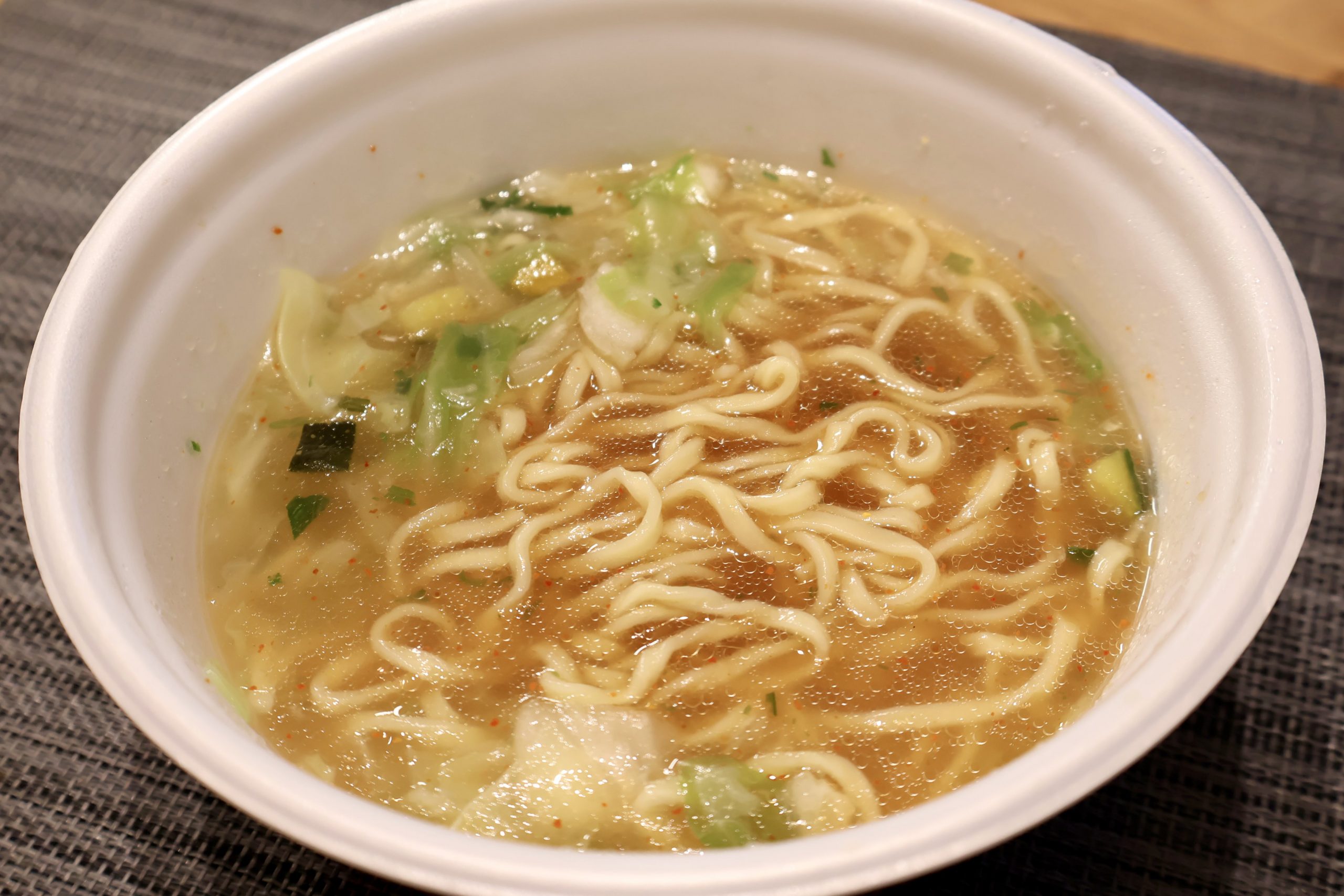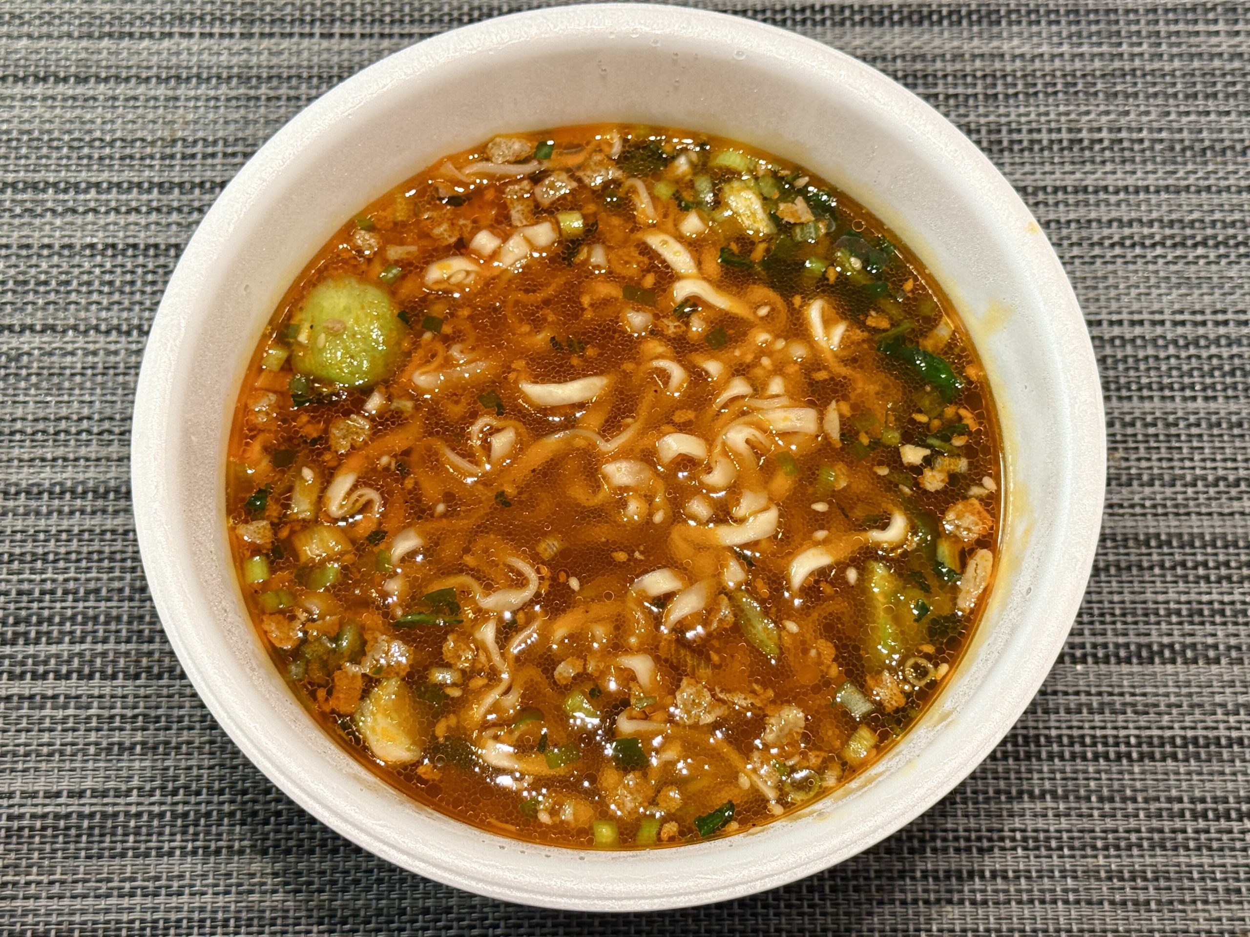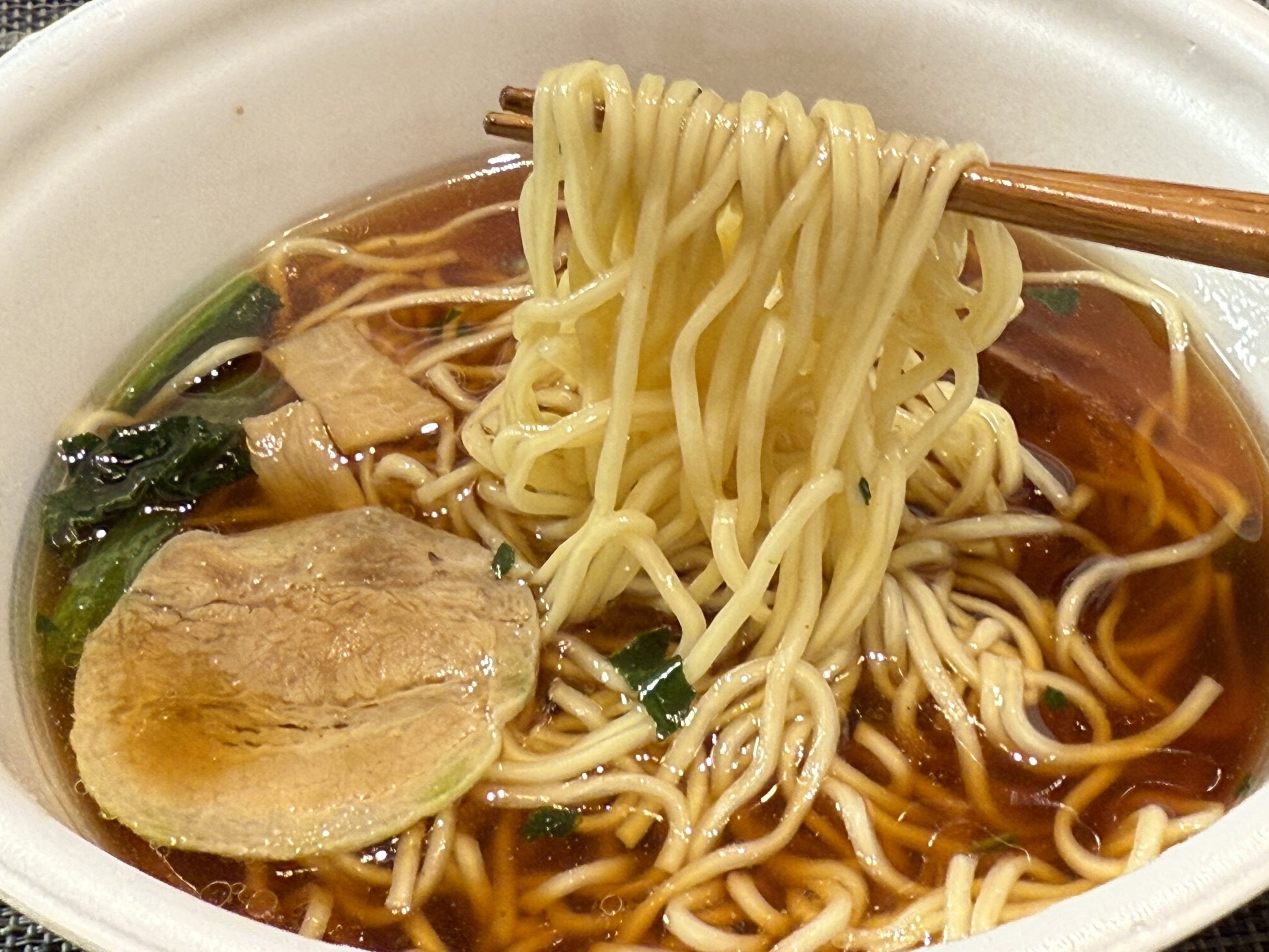 特にワンタンは餡まで美味しい。大絶品。最近のカップ麺はワンタンもだいぶレベルが上がってきていますが、スープや麺との相性もあって特に美味しく感じられました。これはチェーン店だからと侮るなかれ。過去最高レベルのカップ麺といっても過言ではありません!