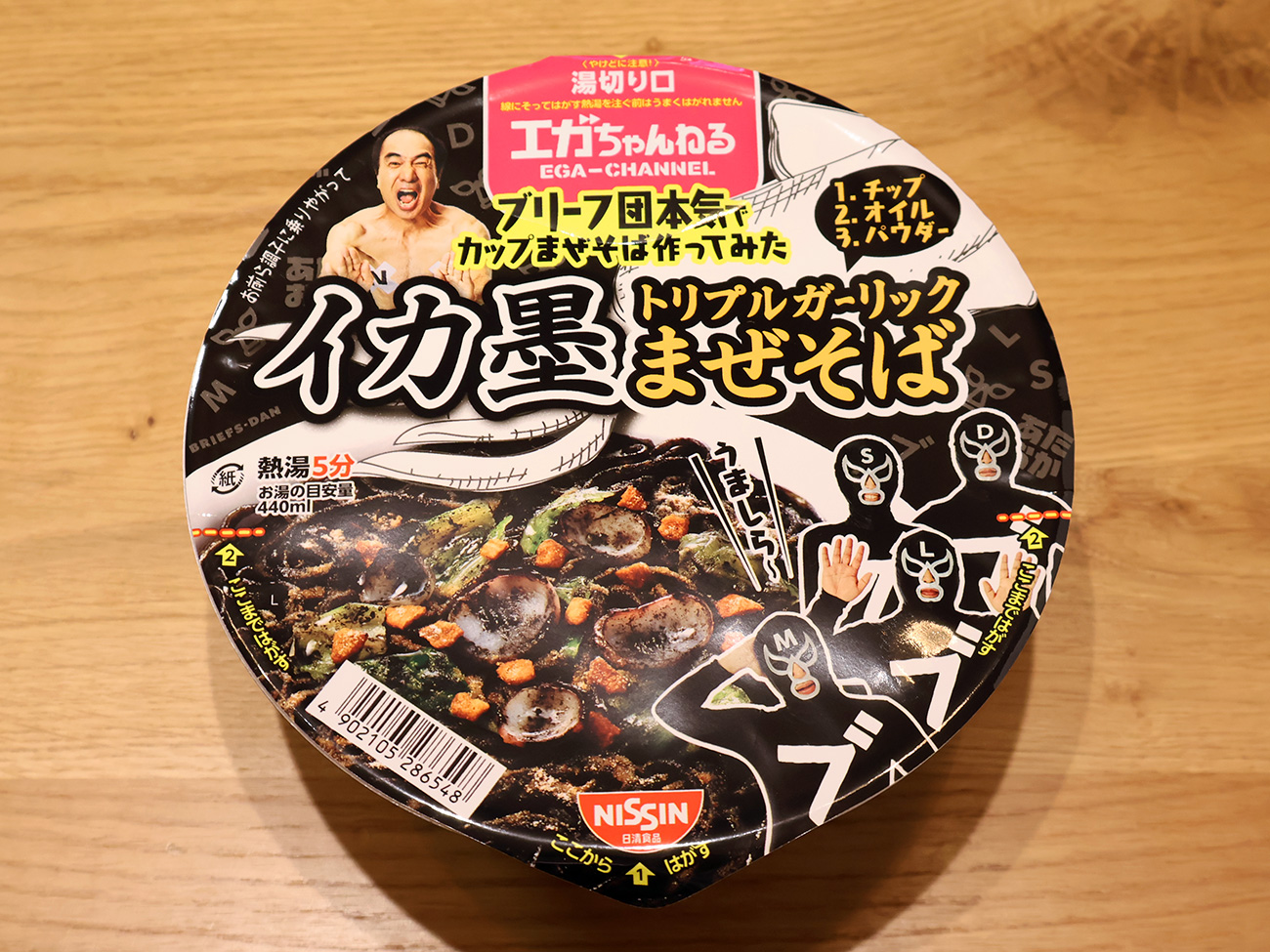 5位は江頭2:50さんのYouTube「エガちゃんねる」の企画で誕生したカップ麺「ブリーフ団監修 イカ墨トリプルガーリックまぜそば」を選びました。