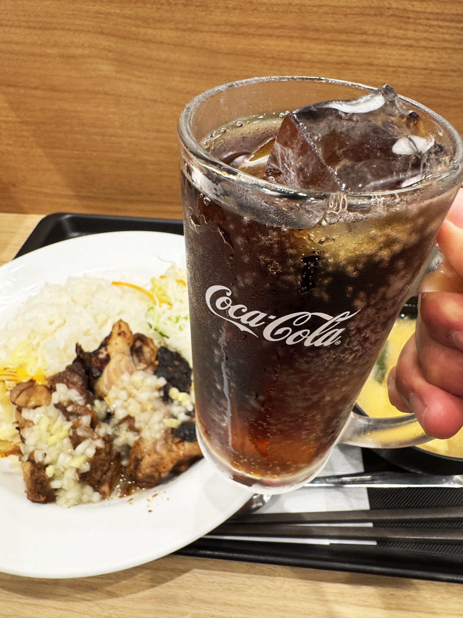 ジャークチキンにはコカ・コーラがマッチするので、ぜひともコカ・コーラも一緒に飲んでほしい。スパイスがガッツリとキまったジャークチキンに、爽やかテイストのコカ・コーラは至高のフレンズ。ごちそうさまでした。
