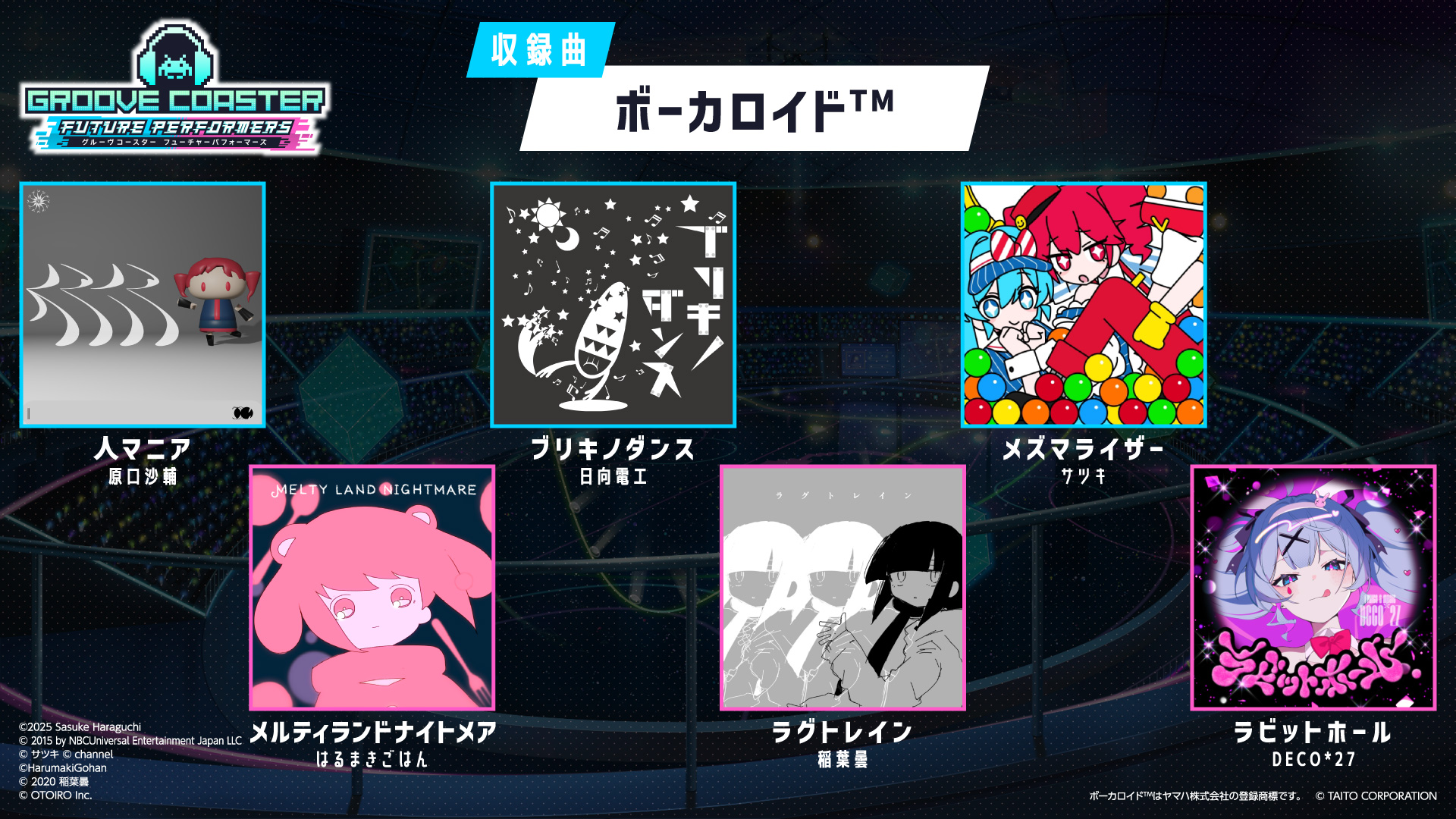 ※TAITO、TAITOロゴおよび「グルーヴコースター」は、日本およびその他の国における株式会社タイトーの商標または登録商標です。