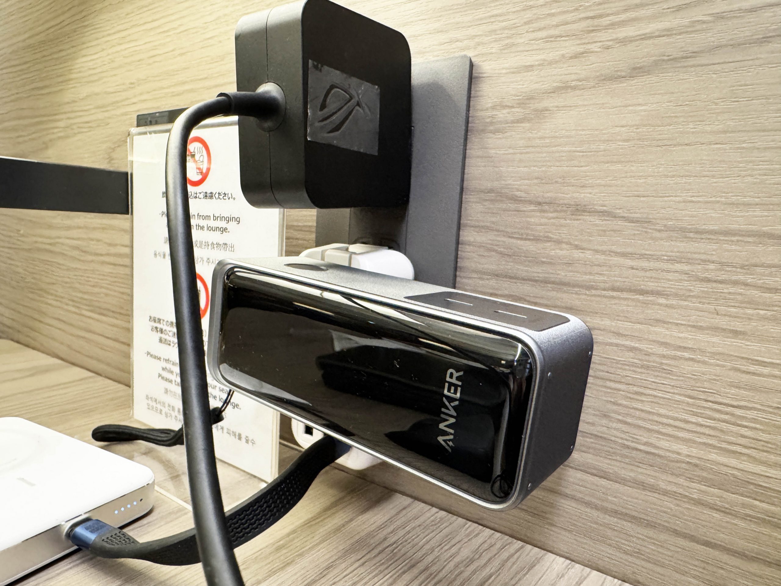 世の中には無数にモイリーが存在しますが、ある意味、モイリーの到達点のひとつが「Anker Prime Power Bank 9600mAh 65W Fusion」だと思っています。コンセントプラグがついているから、コンセントにダイレクトに接続すれば、そのままモイリー本体に充電可能。