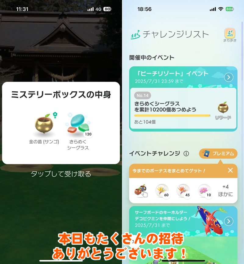 本日も無料分(キノコの挑戦権)をしっかり消費して“きらめくシーグラス”を収集。