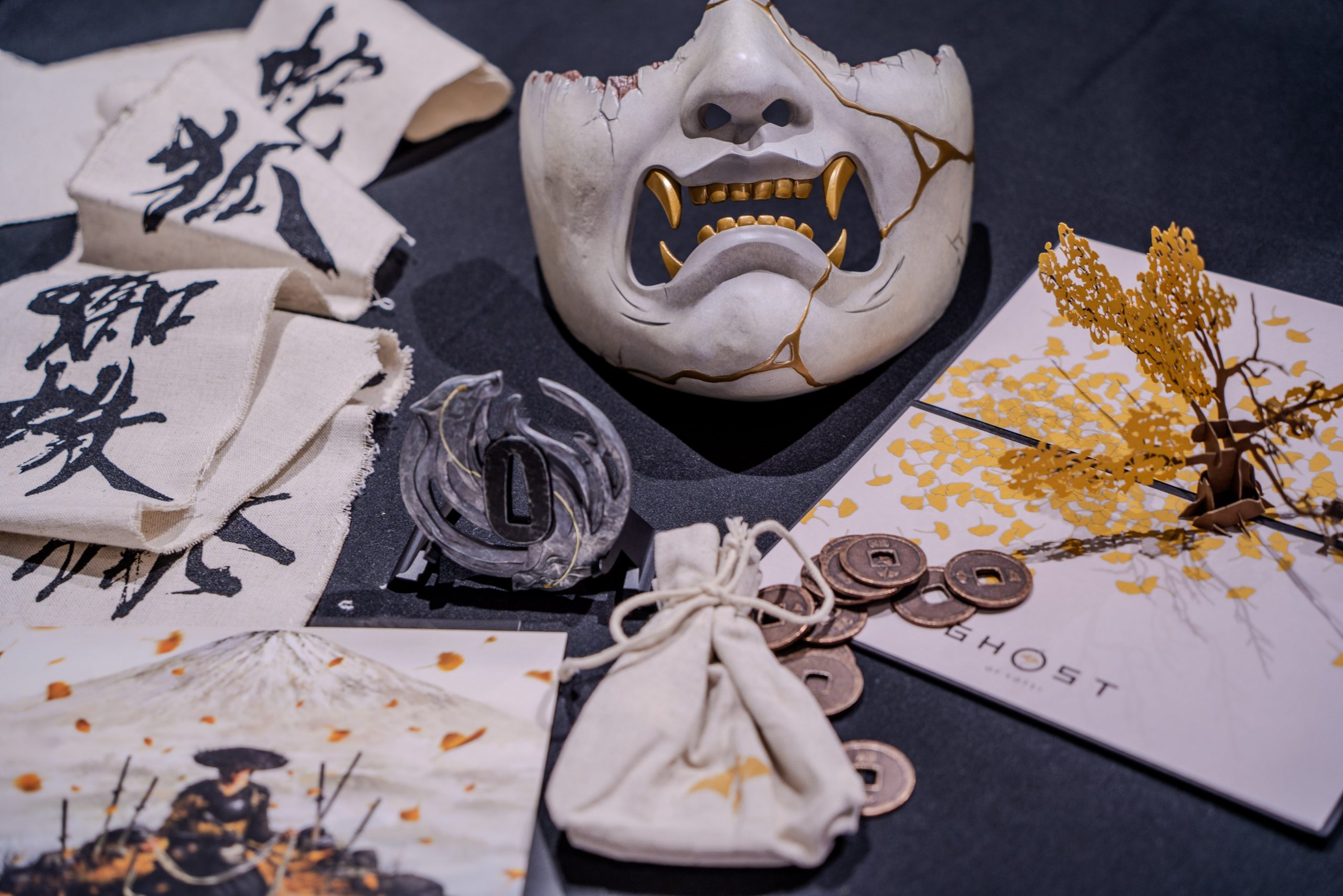 『Ghost of Yōtei』の世界に浸れる「コレクターズエディション」封入アイテムをチラ見せ。主人公・篤の面頬は背面まで金継ぎの装飾が施されたこだわりの一品。篤の刀の鍔は篤の父親が双子の狼をイメージしてあつらえたものなのだとか。"銭弾き"の硬貨は、実際におはじきのように遊べます。 pic.twitter.com/paN3ldqbzx