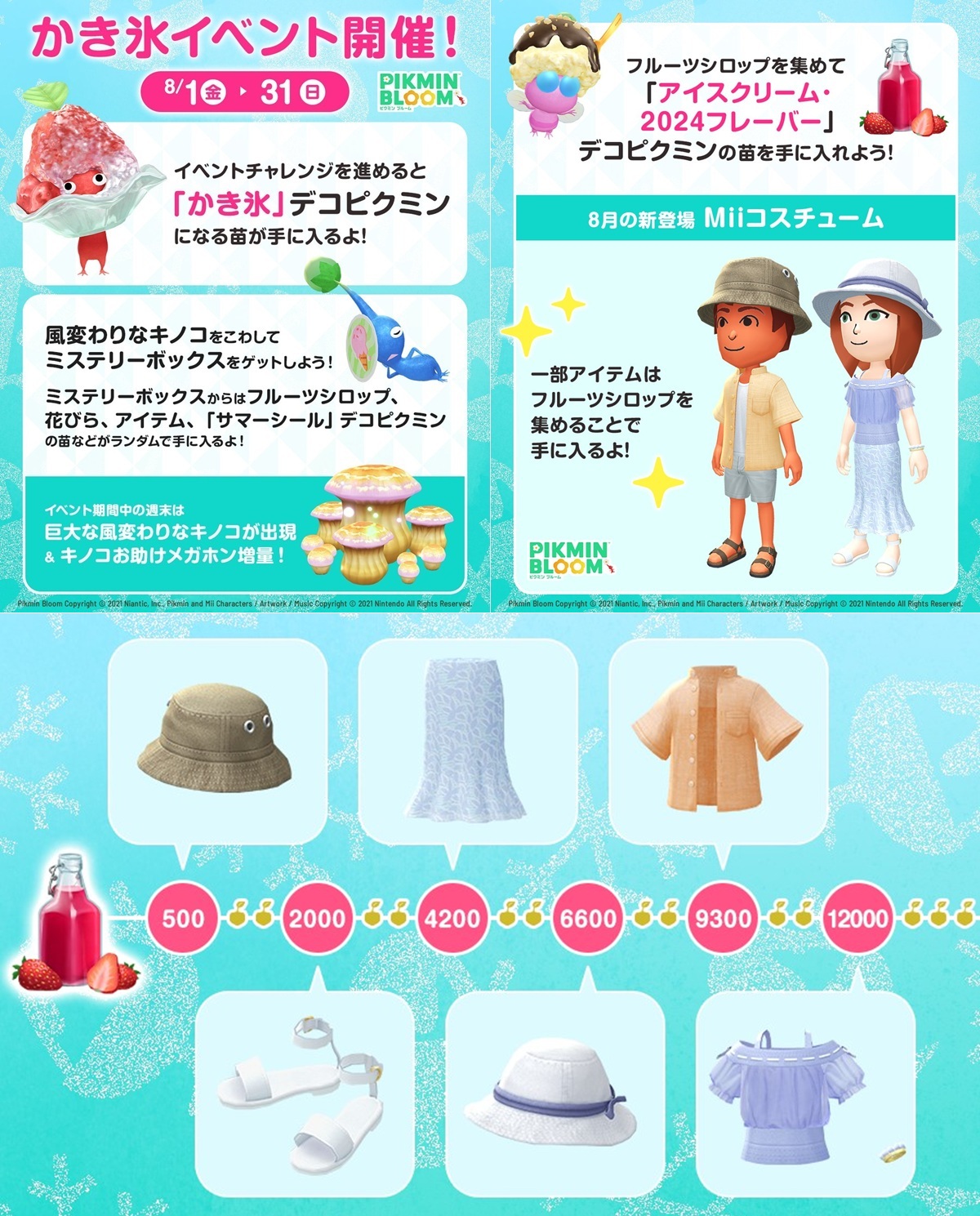 ここからはかき氷のデコピクミンを集めるうえで重要になる8月の環境について。