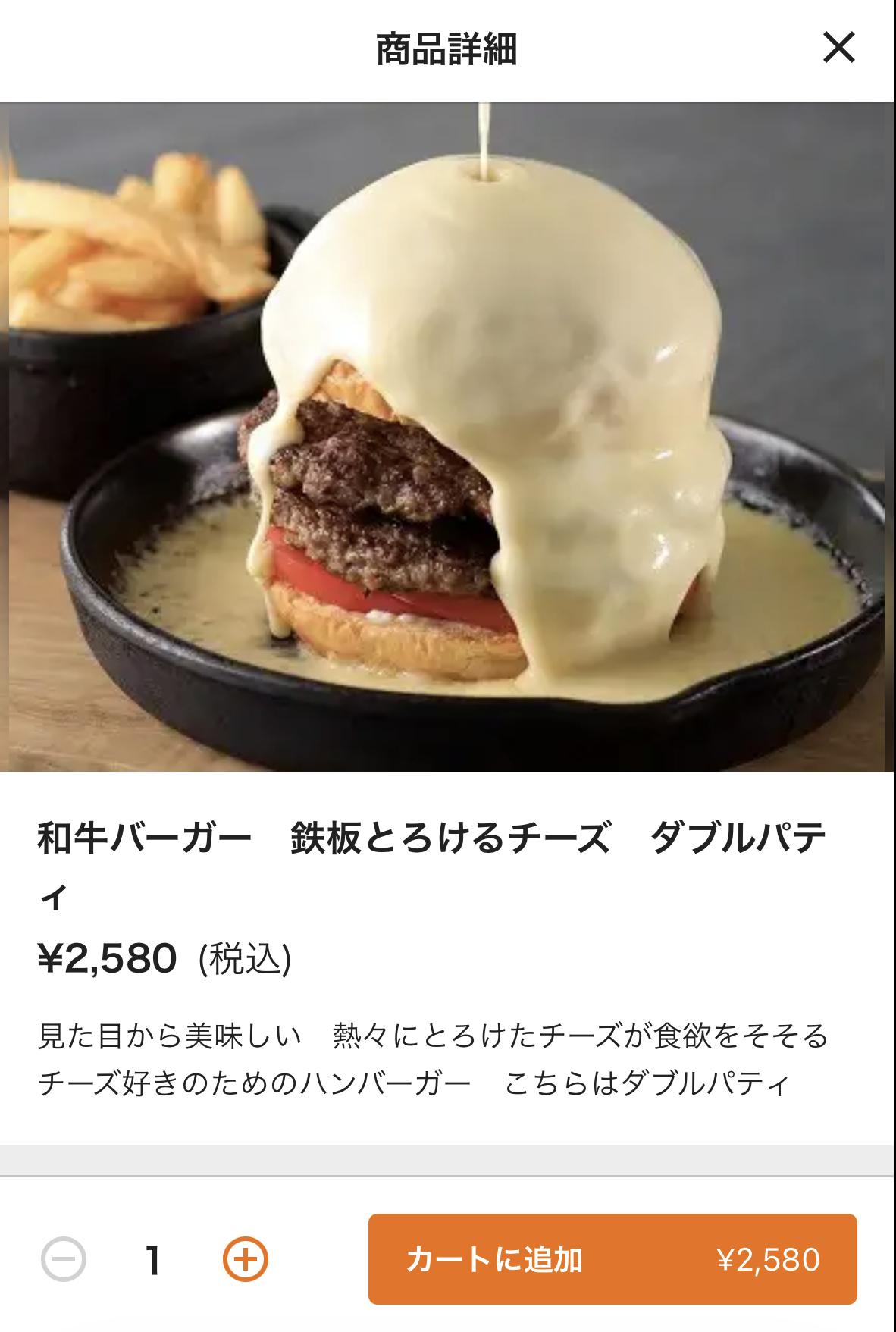 うまい、うますぎる。そしてこのチーズ、上質! 旨味が濃くて塩味が控えめな印象。抵抗なく、飽きることなくススーッと食べられます。あまりにも豪快な和牛バーガー鉄板とろけるチーズダブルパティ、オススメですよ!