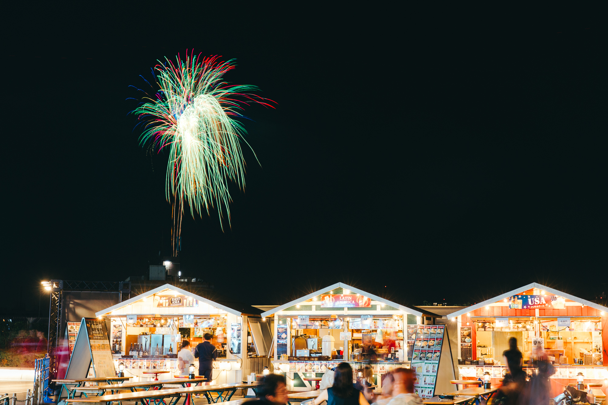 ここでは現在ビアガーデンを営業(9月7日(日)まで)していて、お酒とともに打ち上がる花火を鑑賞するゲストの方たちで賑わっていました。