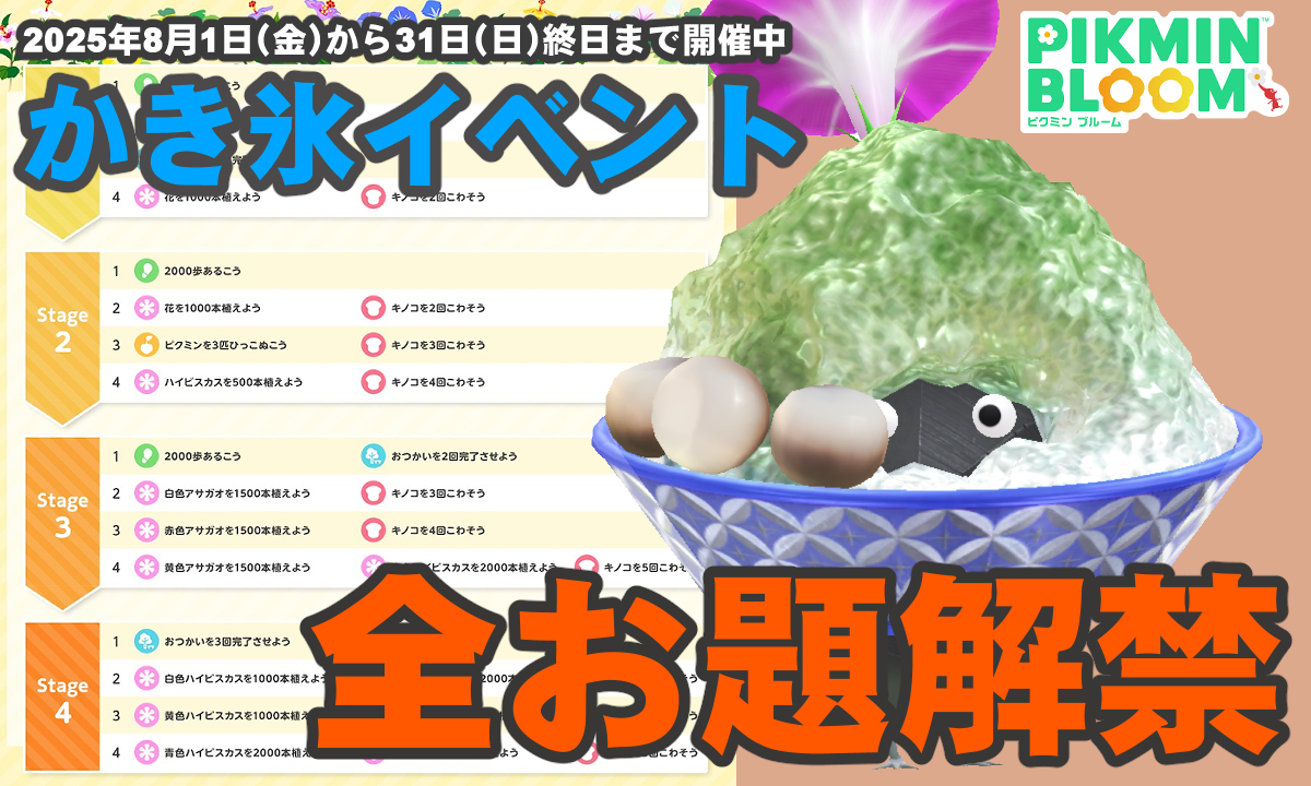 2025年8月1日(金)、本日より位置情報ゲーム『ピクミン ブルーム』にて期間限定の“かき氷”を身に着けたデコピクミンや夏にぴったりなMiiコスチュームを入手できるイベントが開幕。