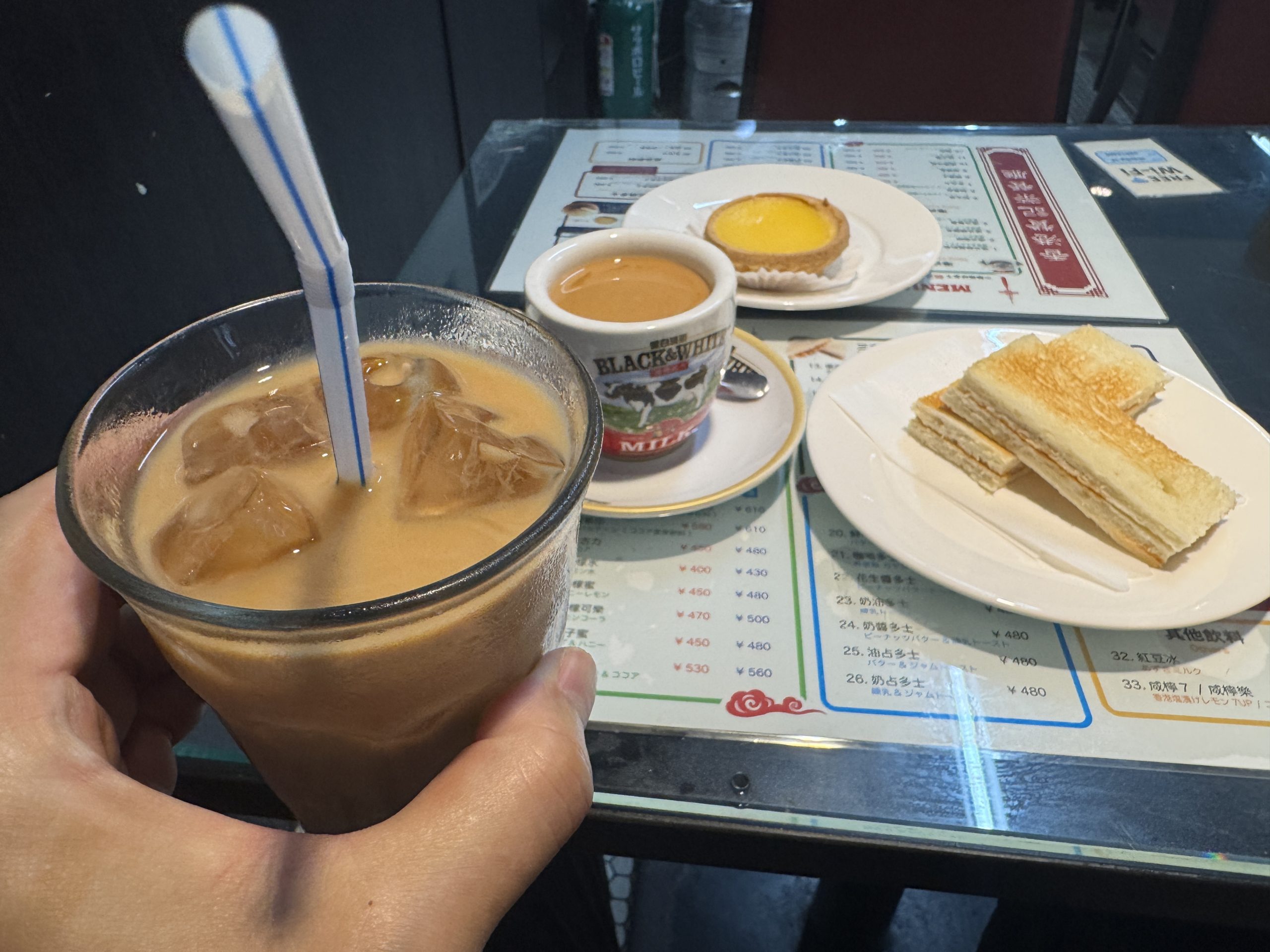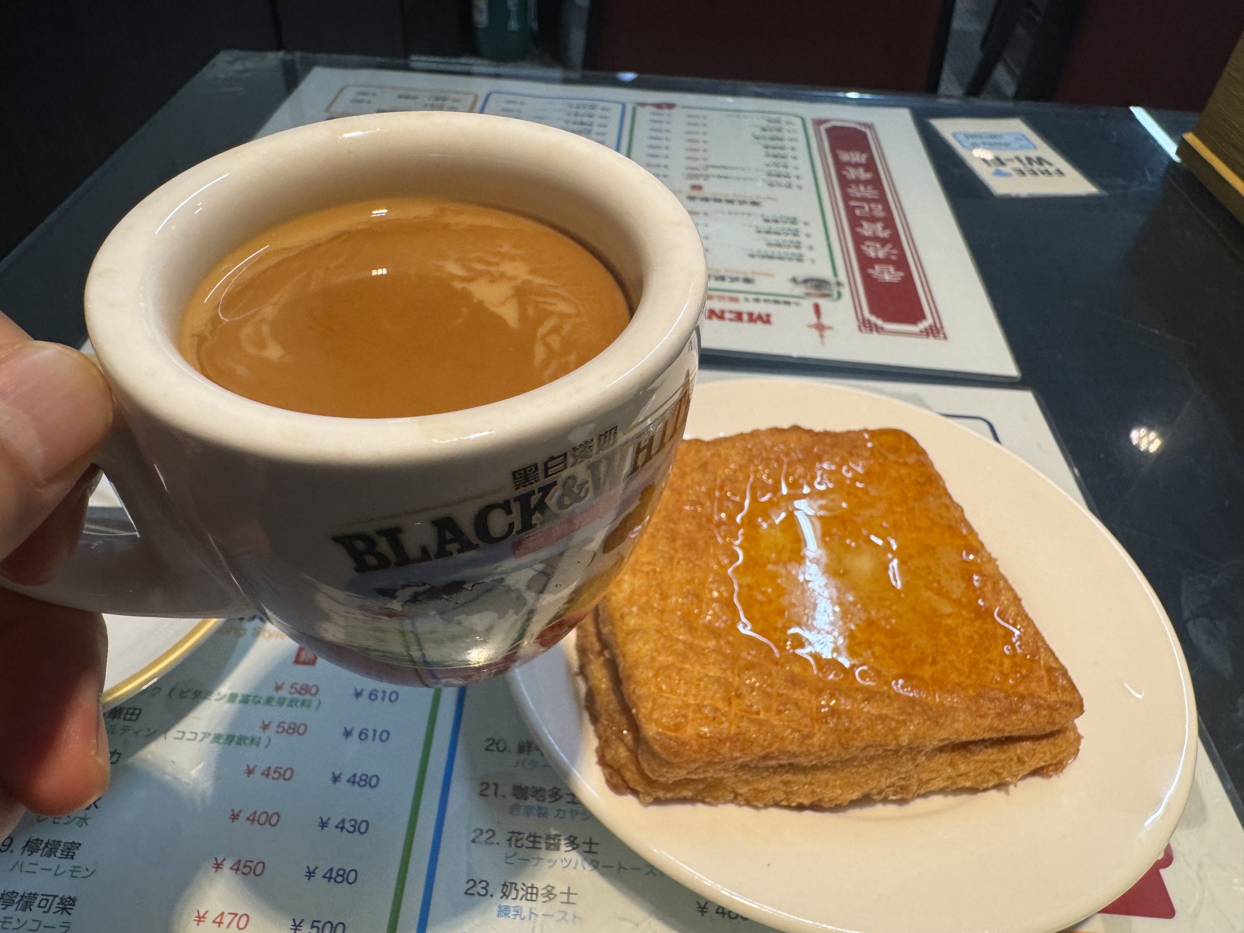 香港式なトーストを徹底的に楽しみつつ、香港式ミルクティーでそのおいしさを盛り上げる。