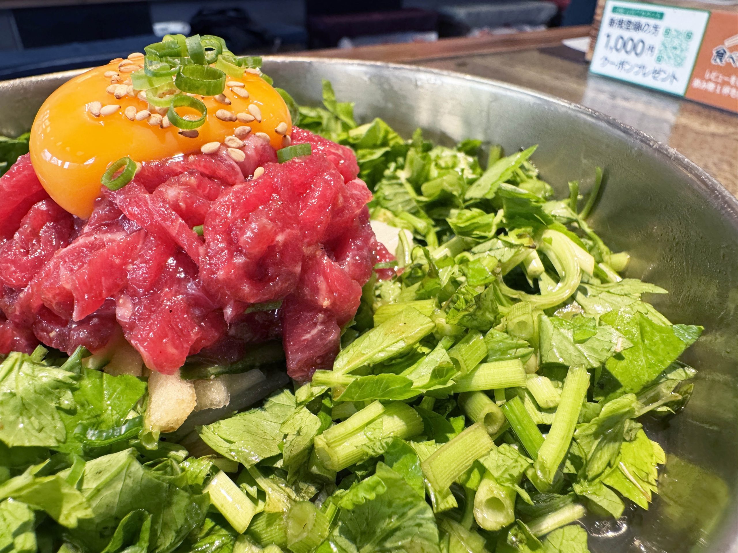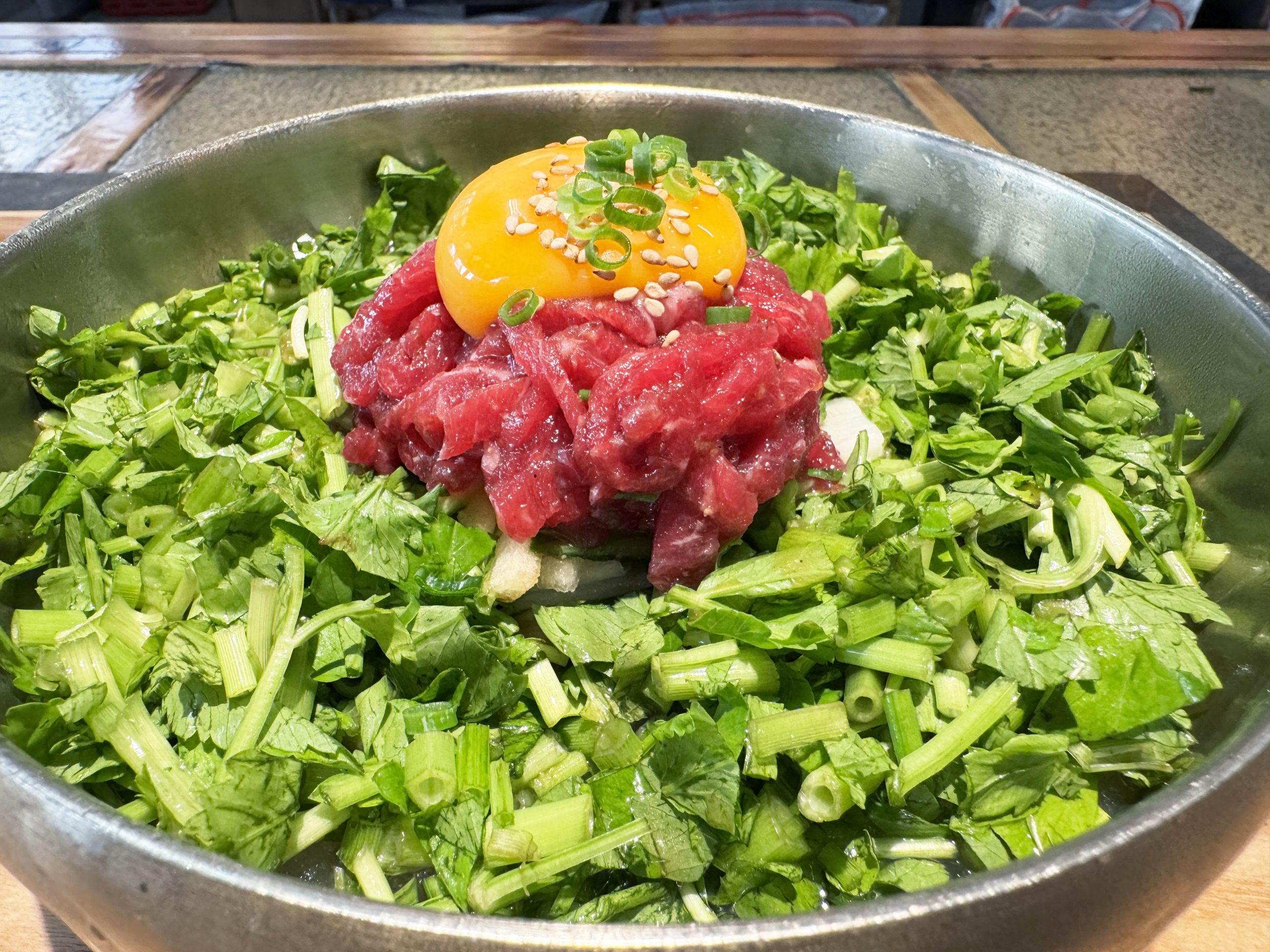 このお店には、ミナリユッケという料理があるほどなので、芹とユッケの融合は間違いない美味しさなのです。