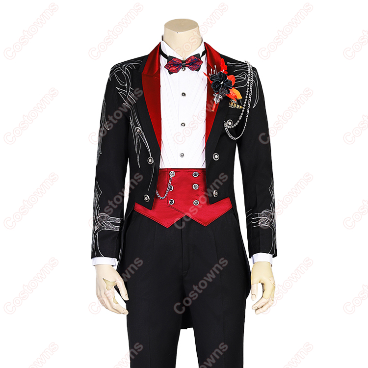 豪華な装飾とエレガントなシルエットが特徴的な、王子様のような雰囲気を持つ衣装です。深みのある色使いと高級感のある生地は、撮影映え間違いなし。舞台やイベントでの使用にも最適です。