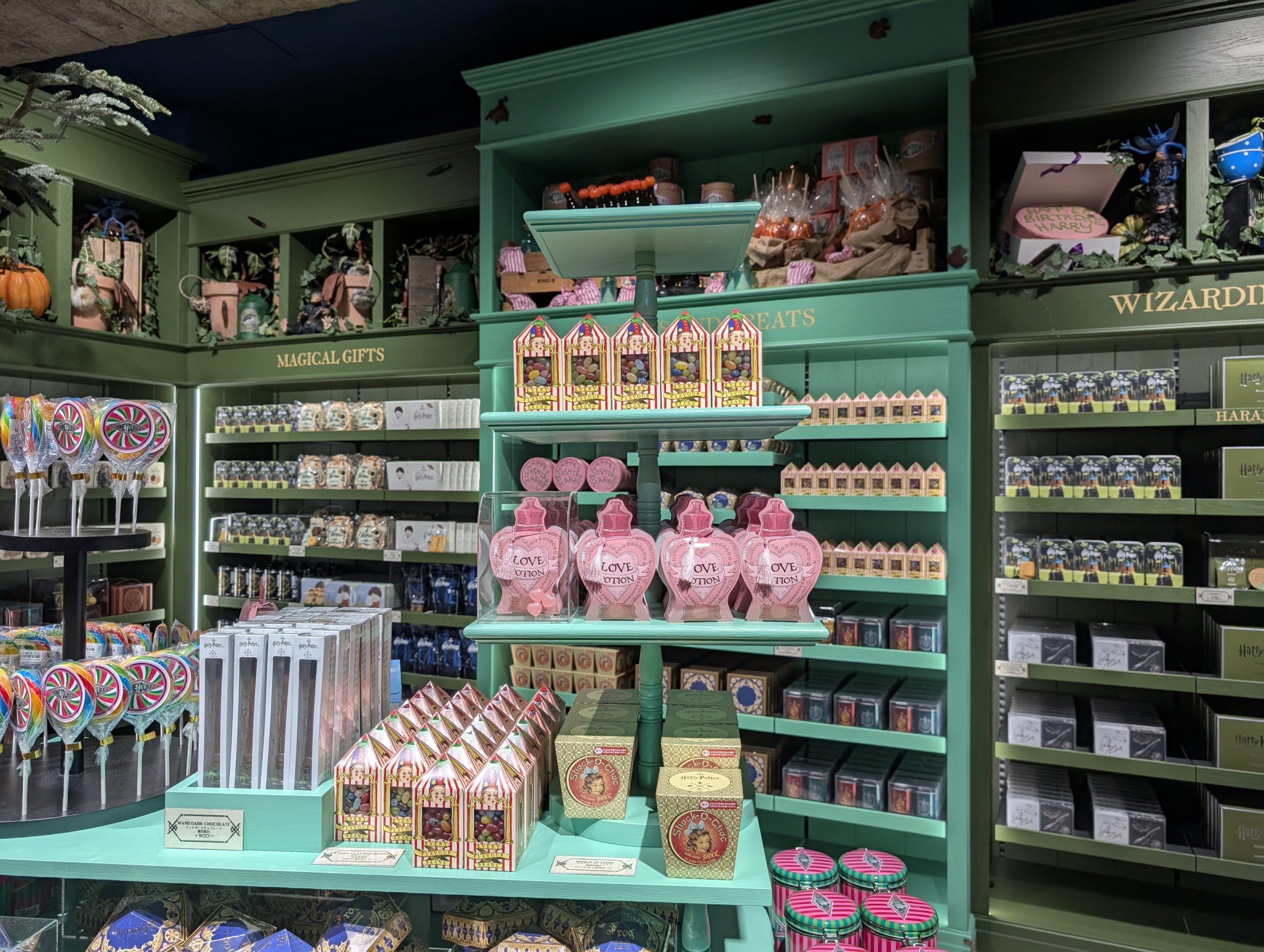 なかでもひときわ目を引くのは、ホグワーツの生徒たちが大好きなお菓子屋さんのハニーデュークスをイメージしたエリア!