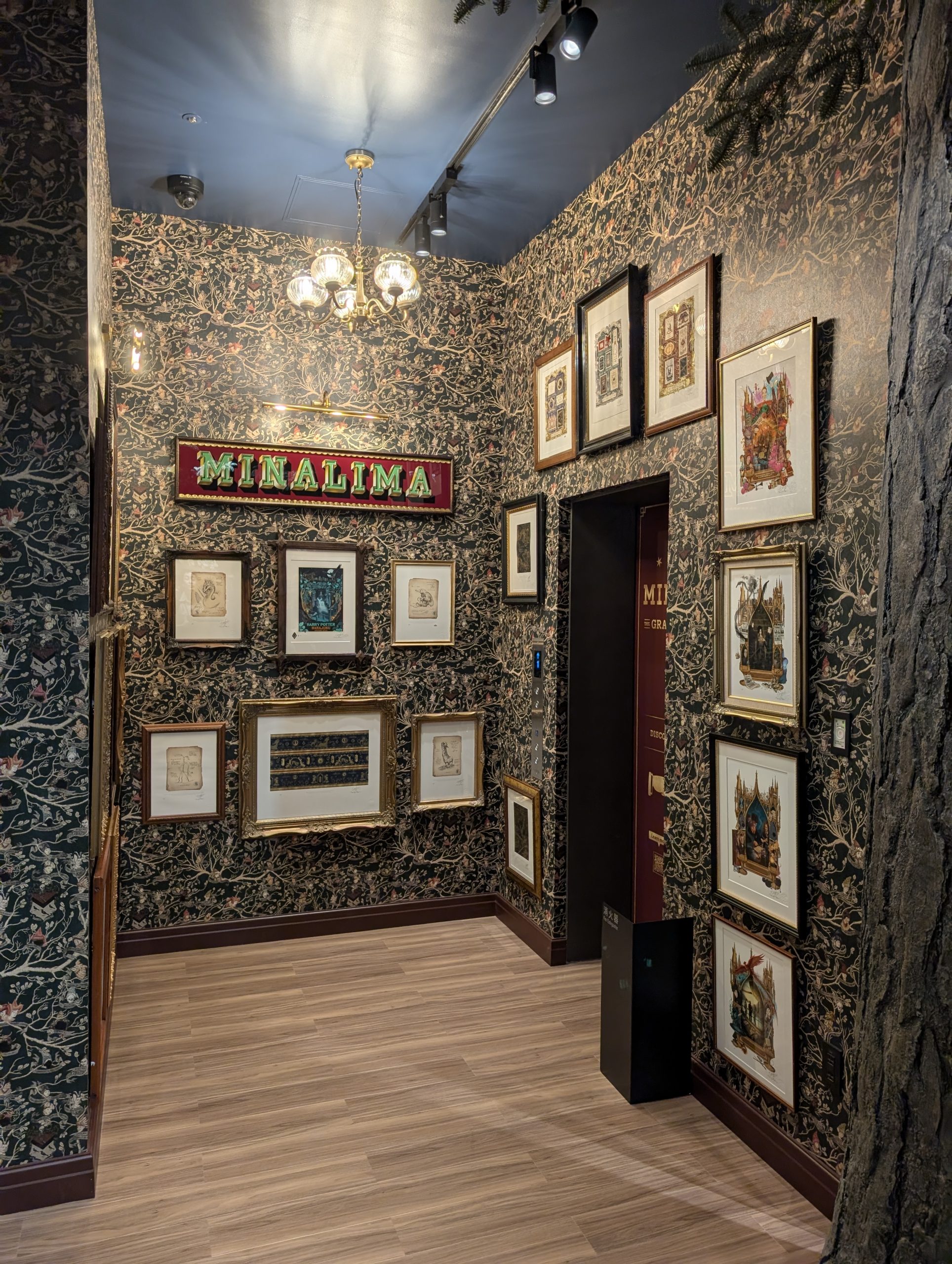 映画「ハリー・ポッター」シリーズでグラフィックデザインを手がけたグラフィック・デュオ「ミナリマ」の貴重なアートを購入することができるエリアや、