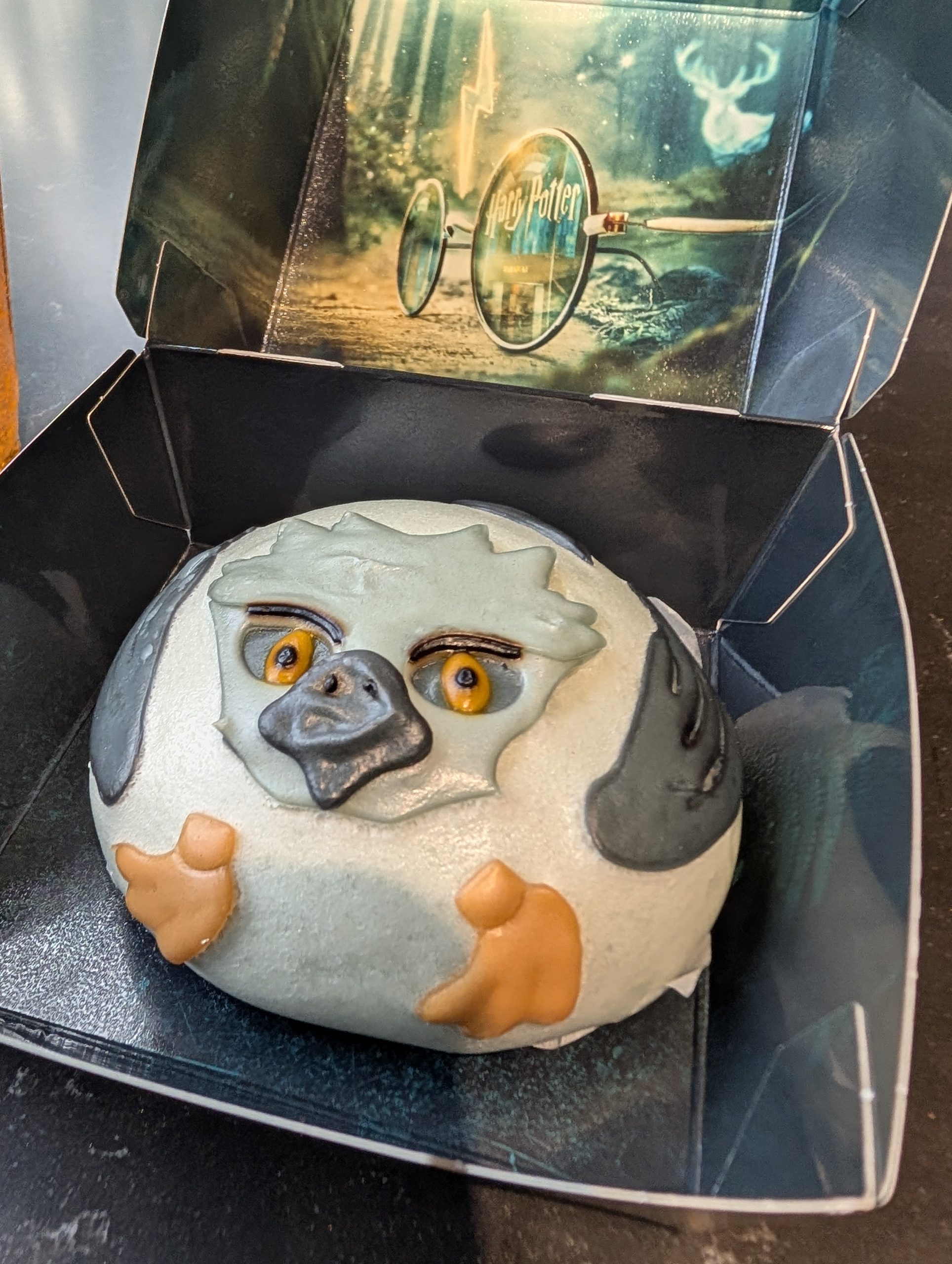 また、魔法動物バックビークをモチーフにした「バックビークまん~ピザフレーバー~」は、原宿限定メニューとなります。映画『ハリー・ポッターとアズカバンの囚人』に登場するヒッポグリフのバックビークがピザまんになって登場。甘いバタービールと相性も抜群の一品です。