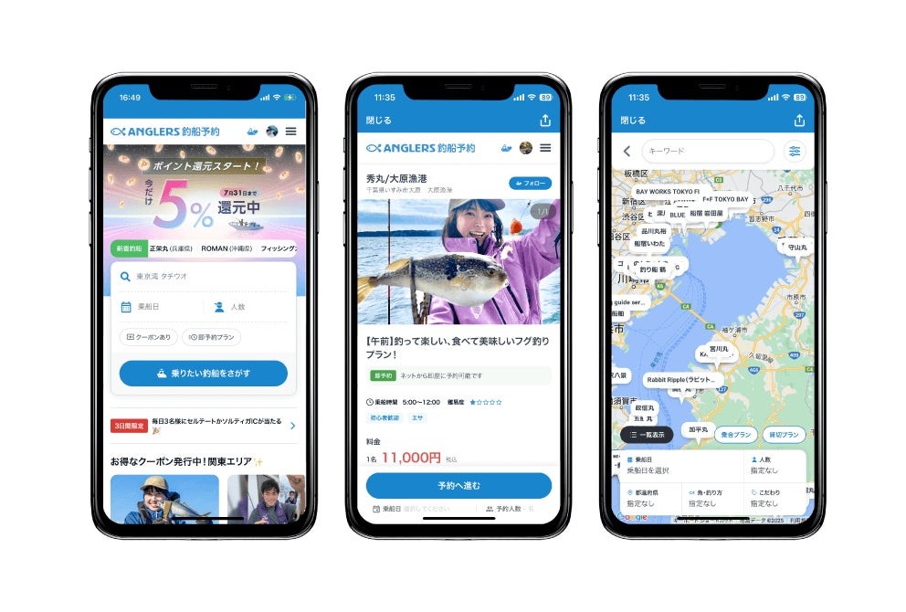 アプリとweb合計アクティブユーザー数が120万人超の「ANGLERS(アングラーズ)」では、釣り初心者でも簡単に釣船を予約できます