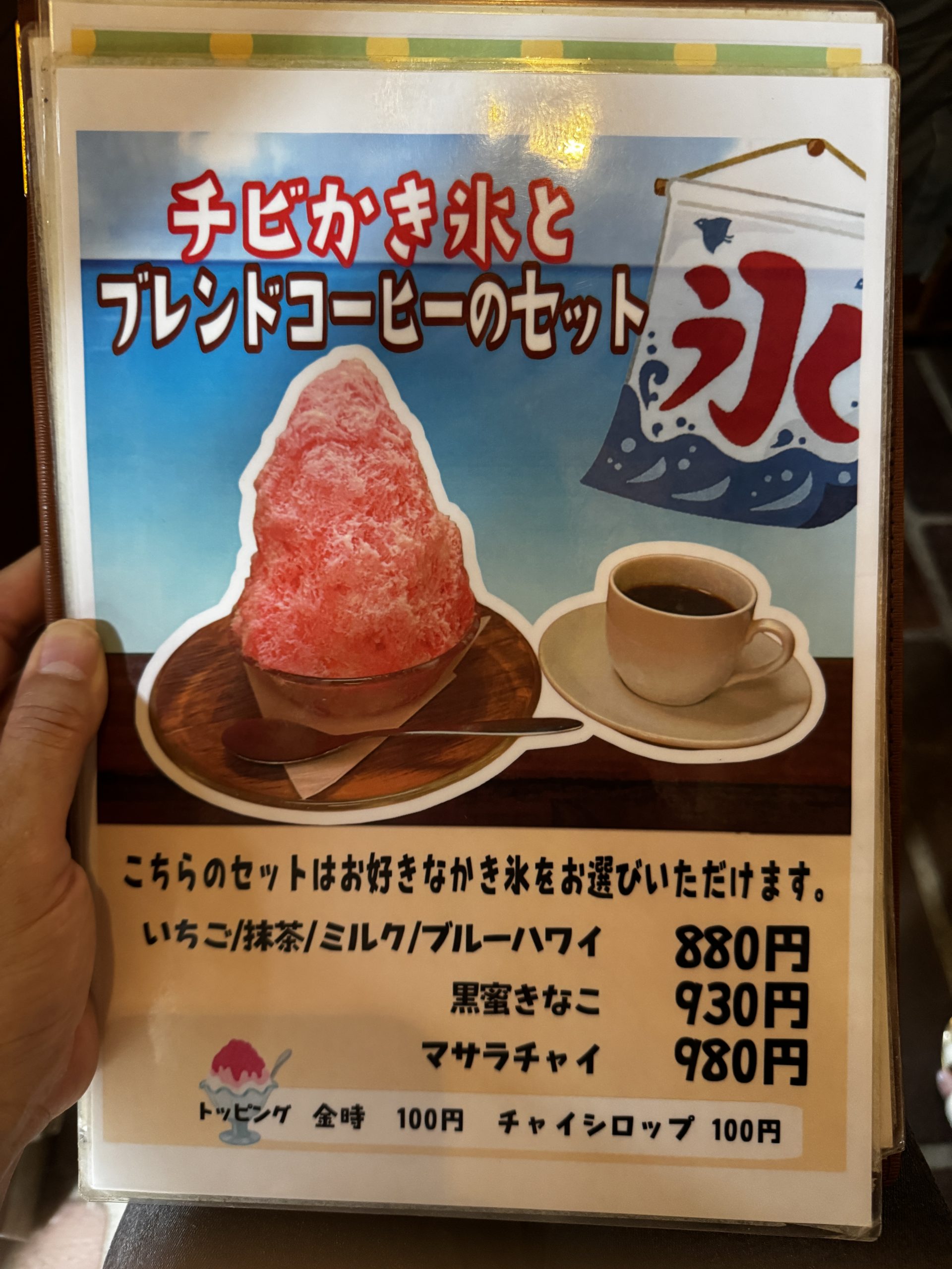 もし夏の時期に神田珈琲園に行くならば、マサラチャイとマサラチャイかき氷とチャイシロップの組み合わせを推したい。とことんチャイ祭り。どれを食べても、どれを飲んでも、チャイ、チャイ、チャイ。
