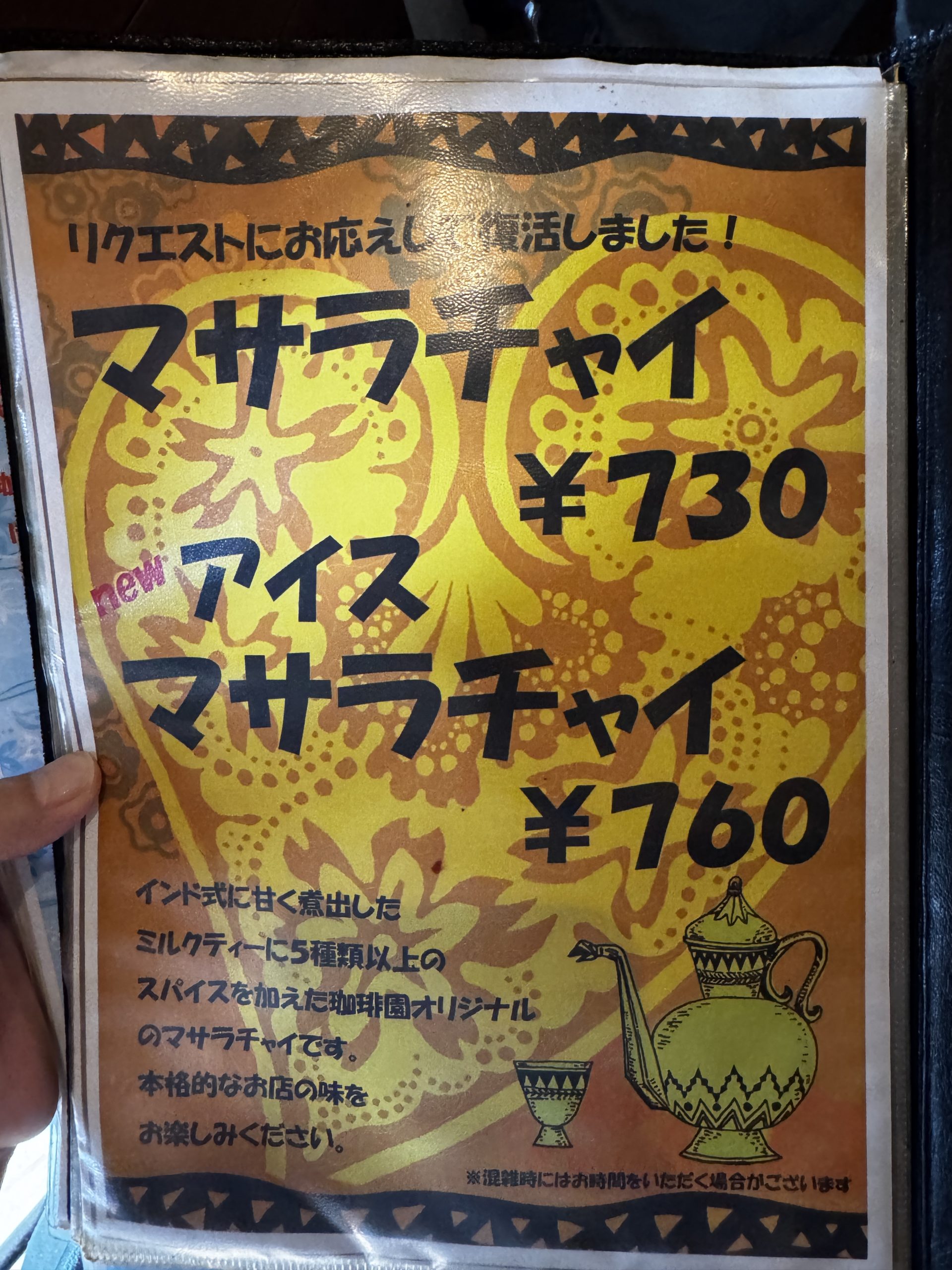 神田珈琲園のマサラチャイとマサラチャイかき氷とチャイシロップ、オススメだ。