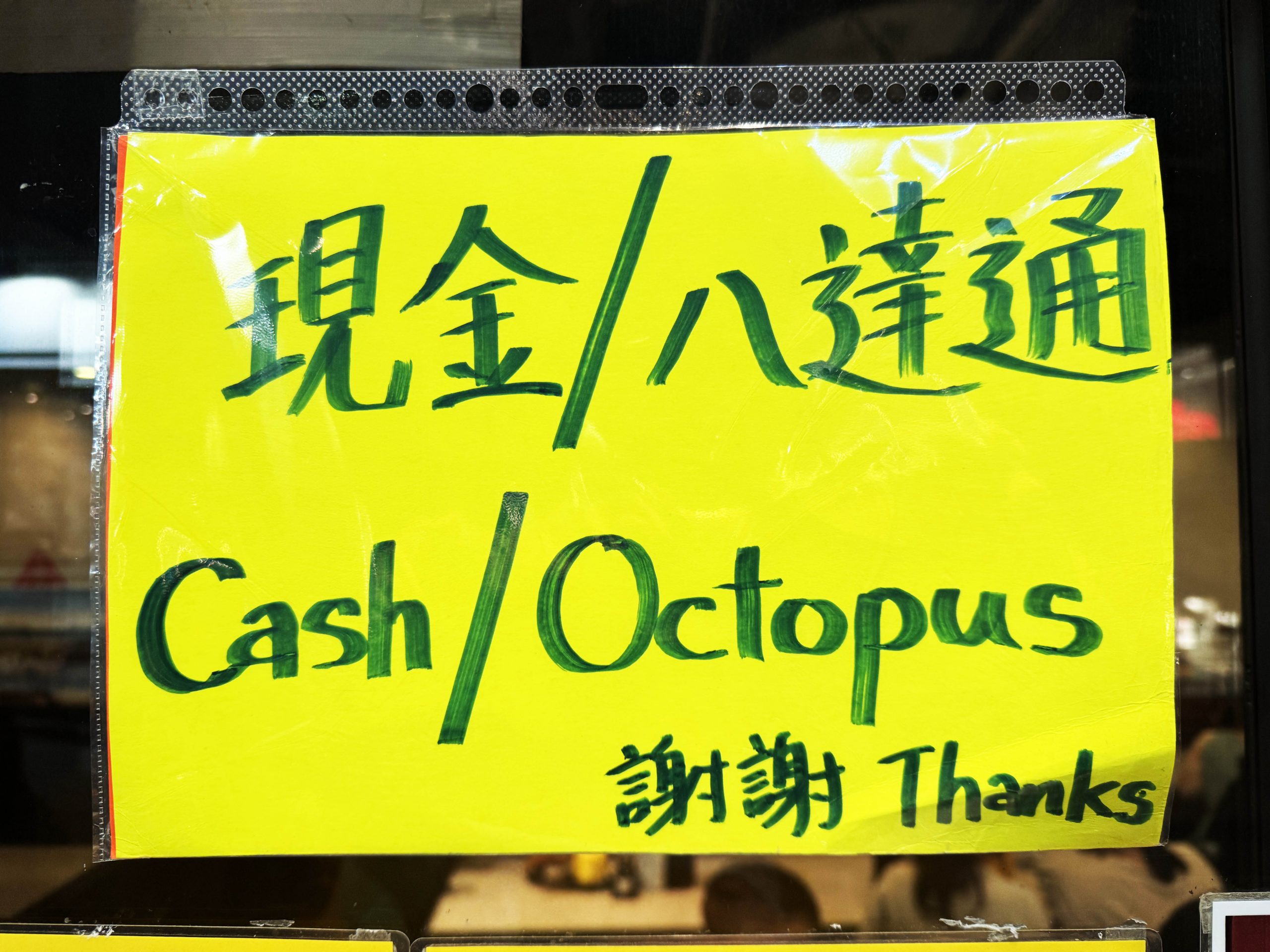 現金とオクトパスカード(香港のSuica的なもの)しか使えないみたい。