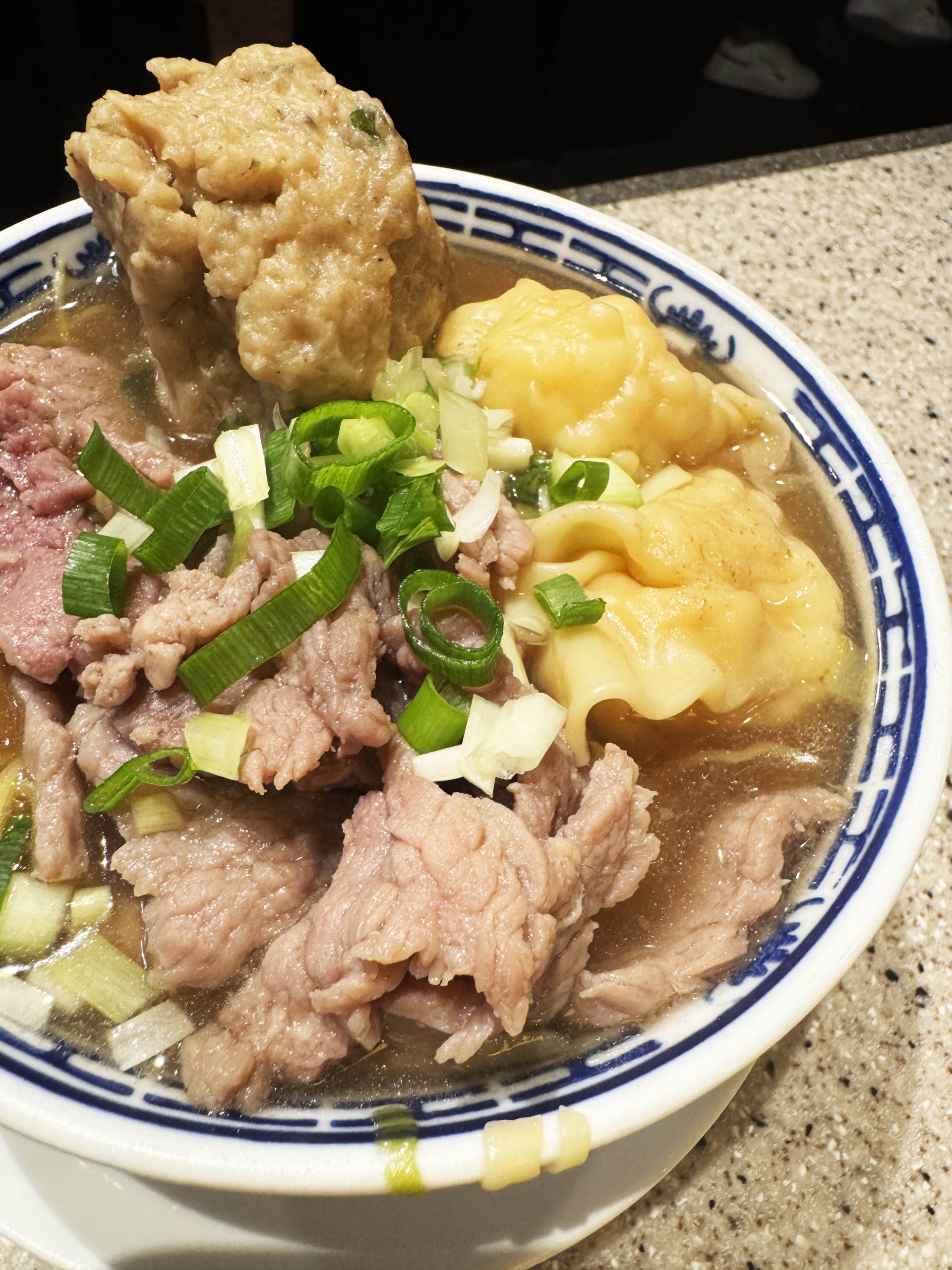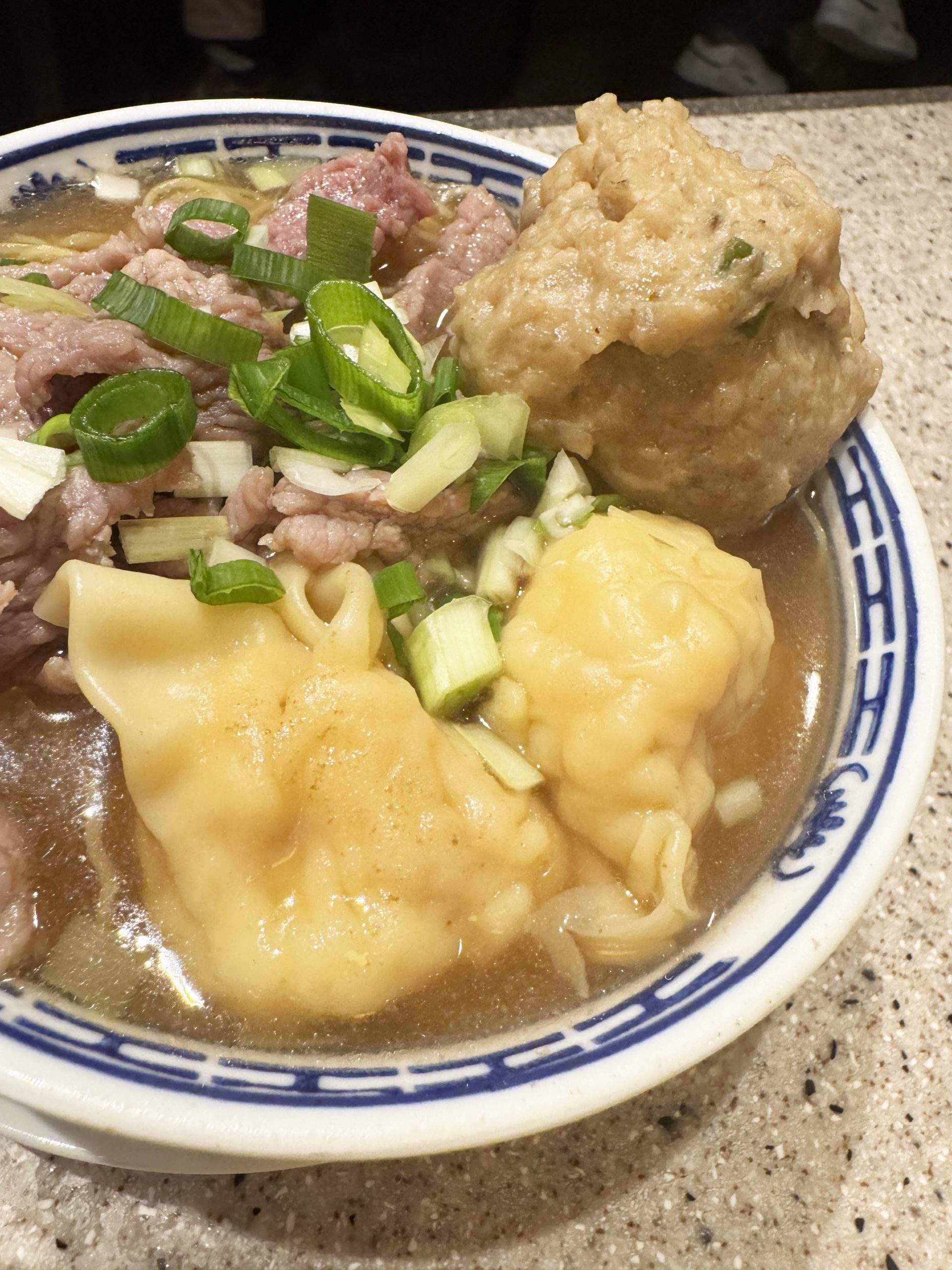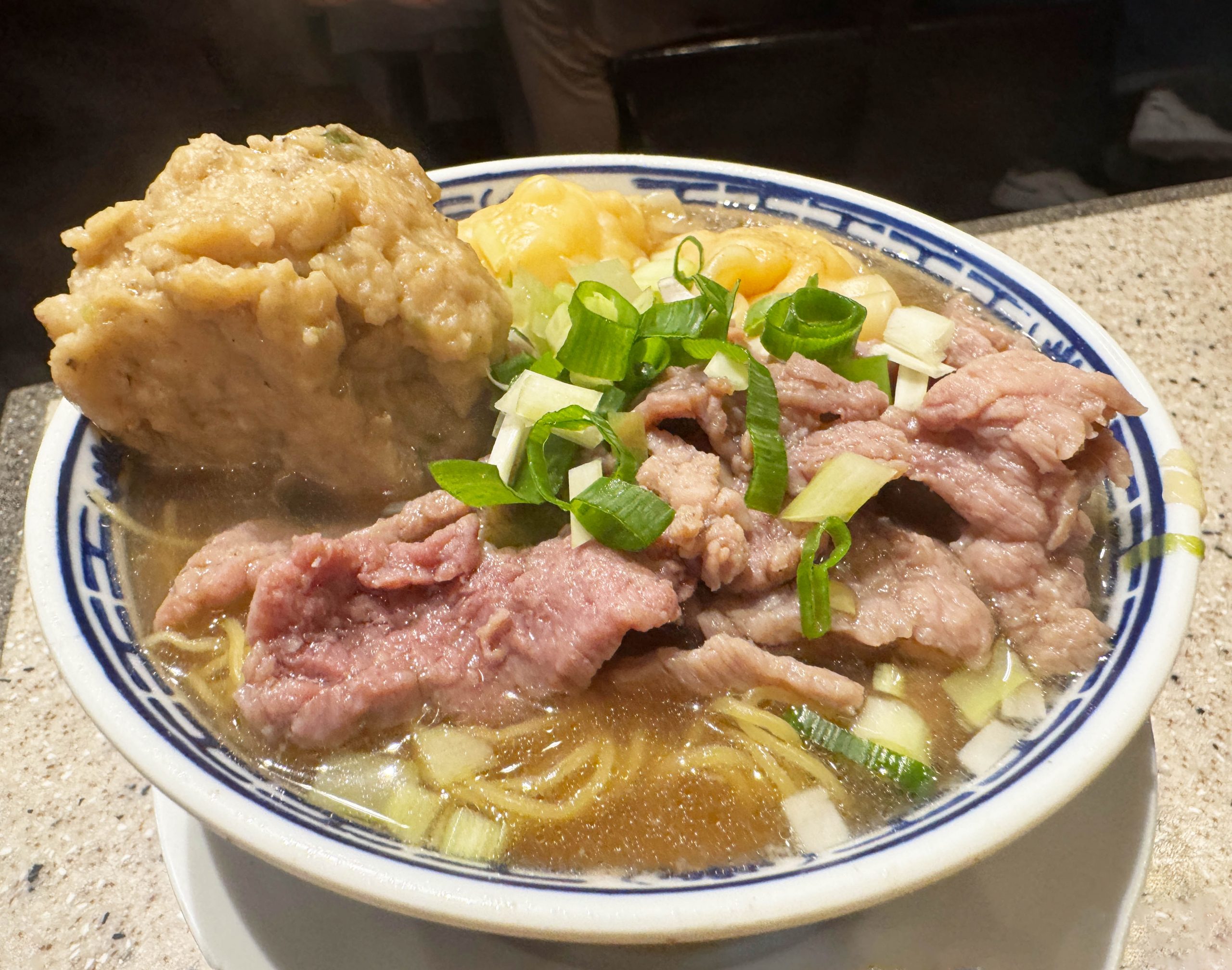 ワンタン、つみれ、牛肉が盛られている大ボリュームなもの。