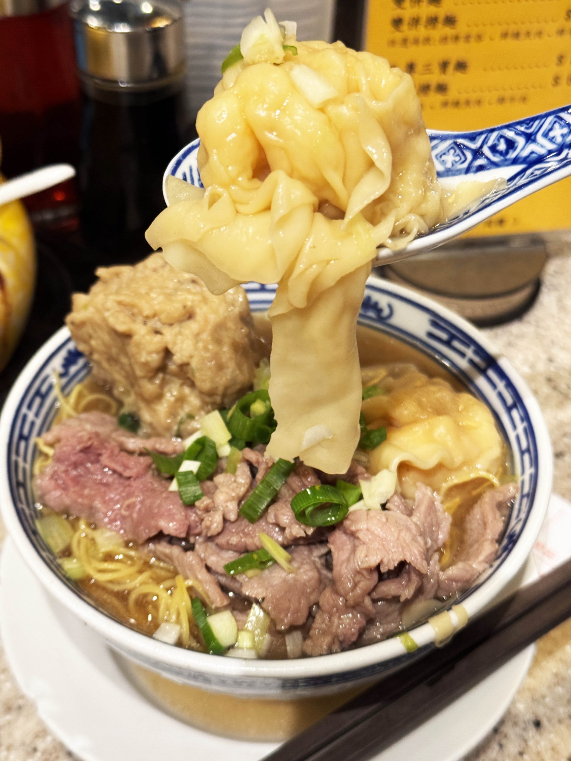 スープがとても繊細というか、クリアで塩味控えめなので、ワンタンの良さを強く感じることができます。