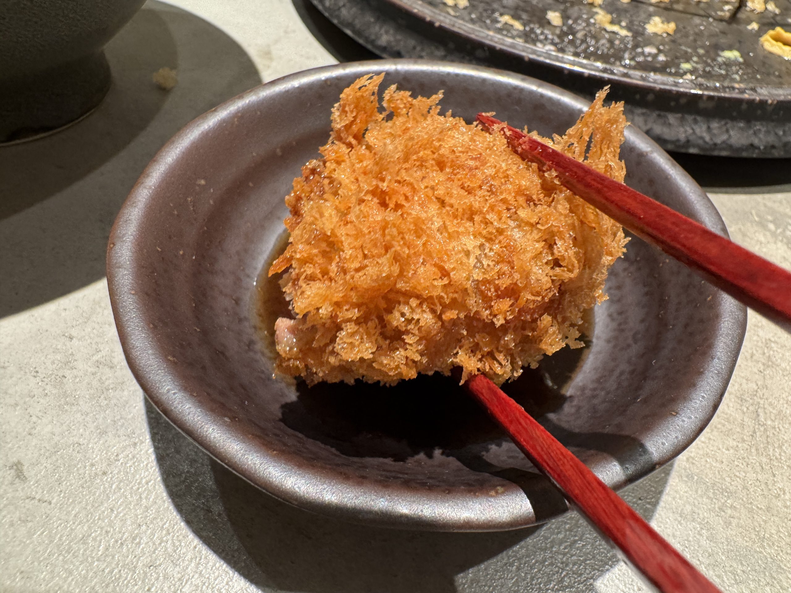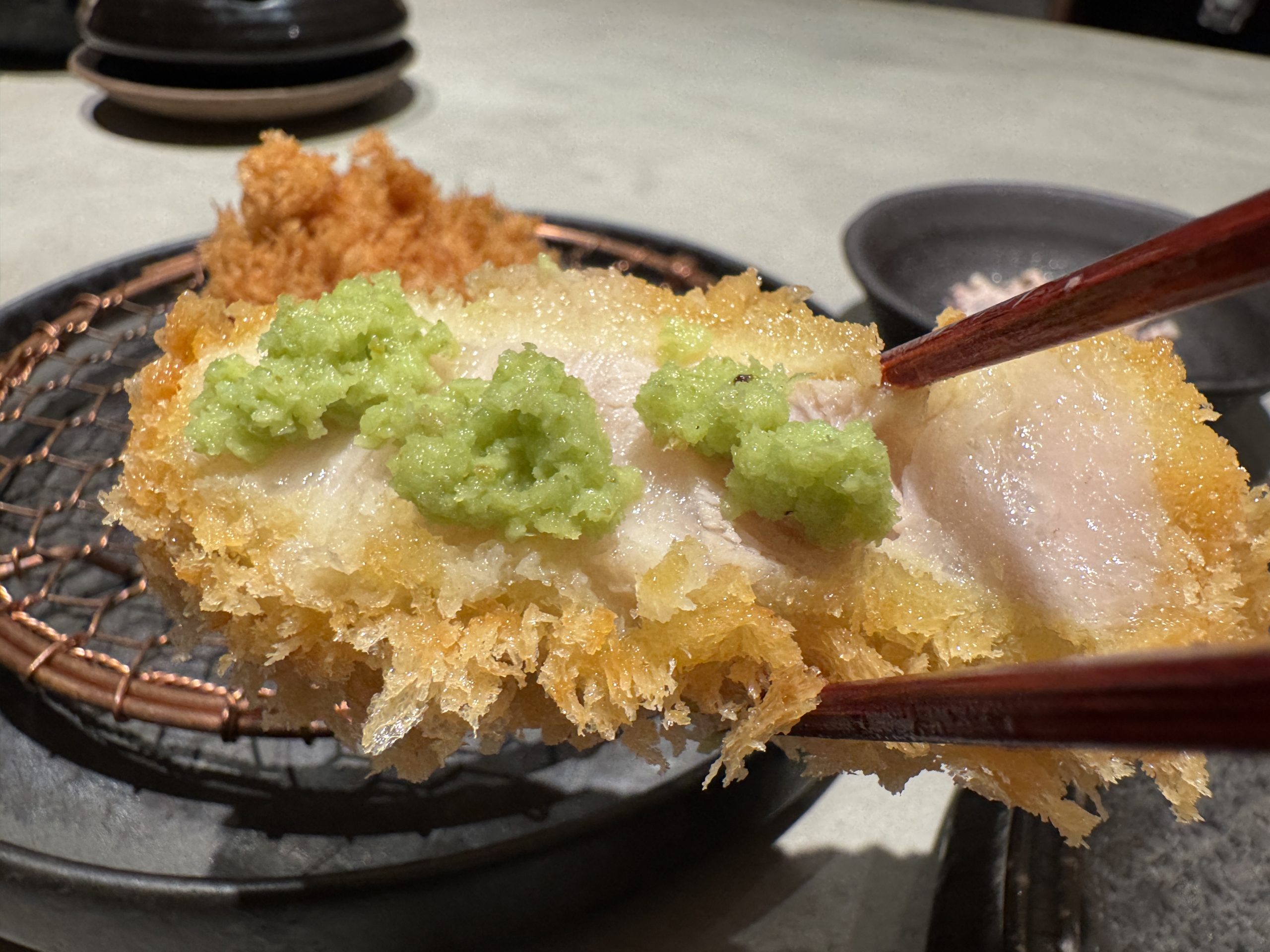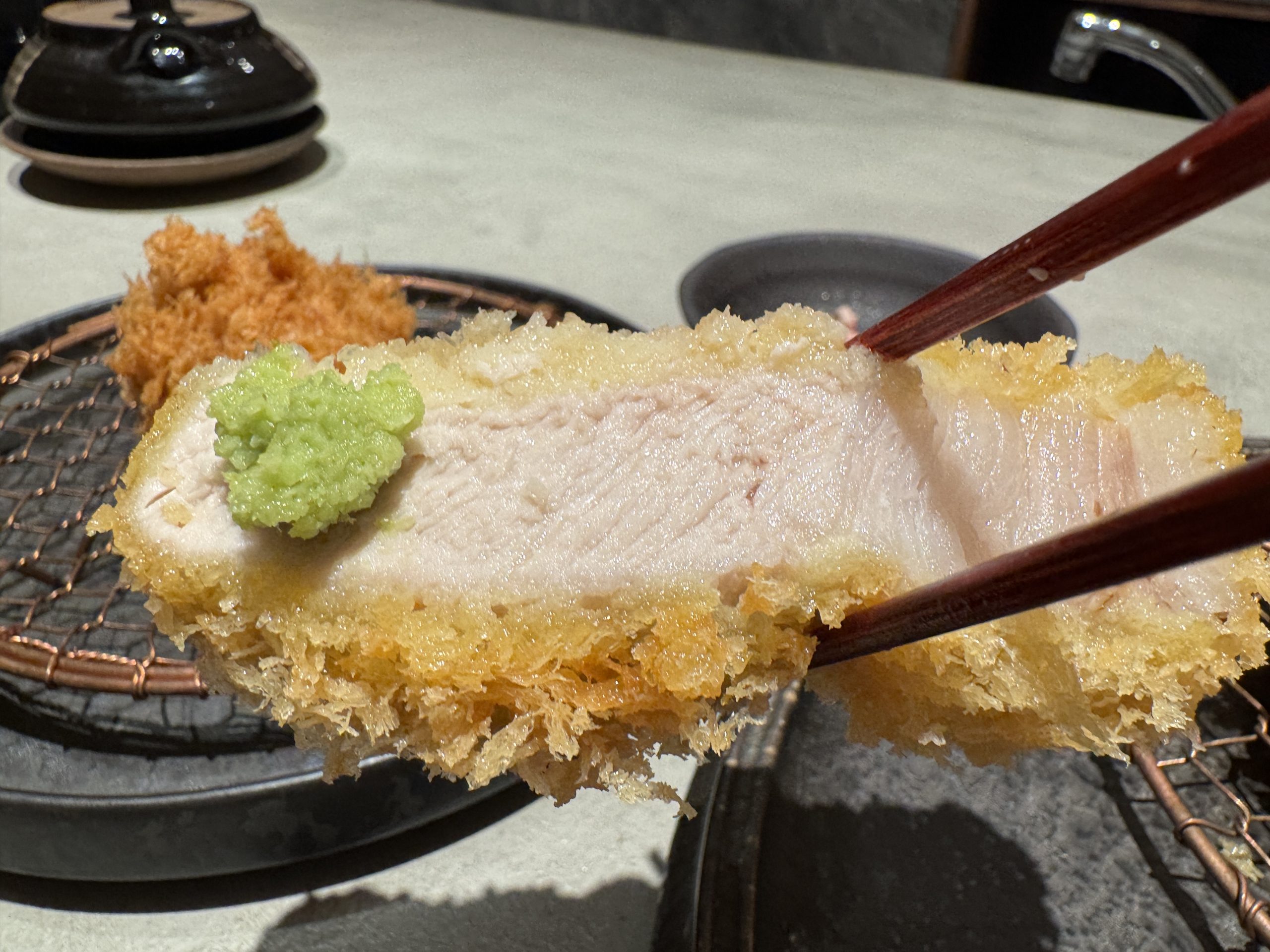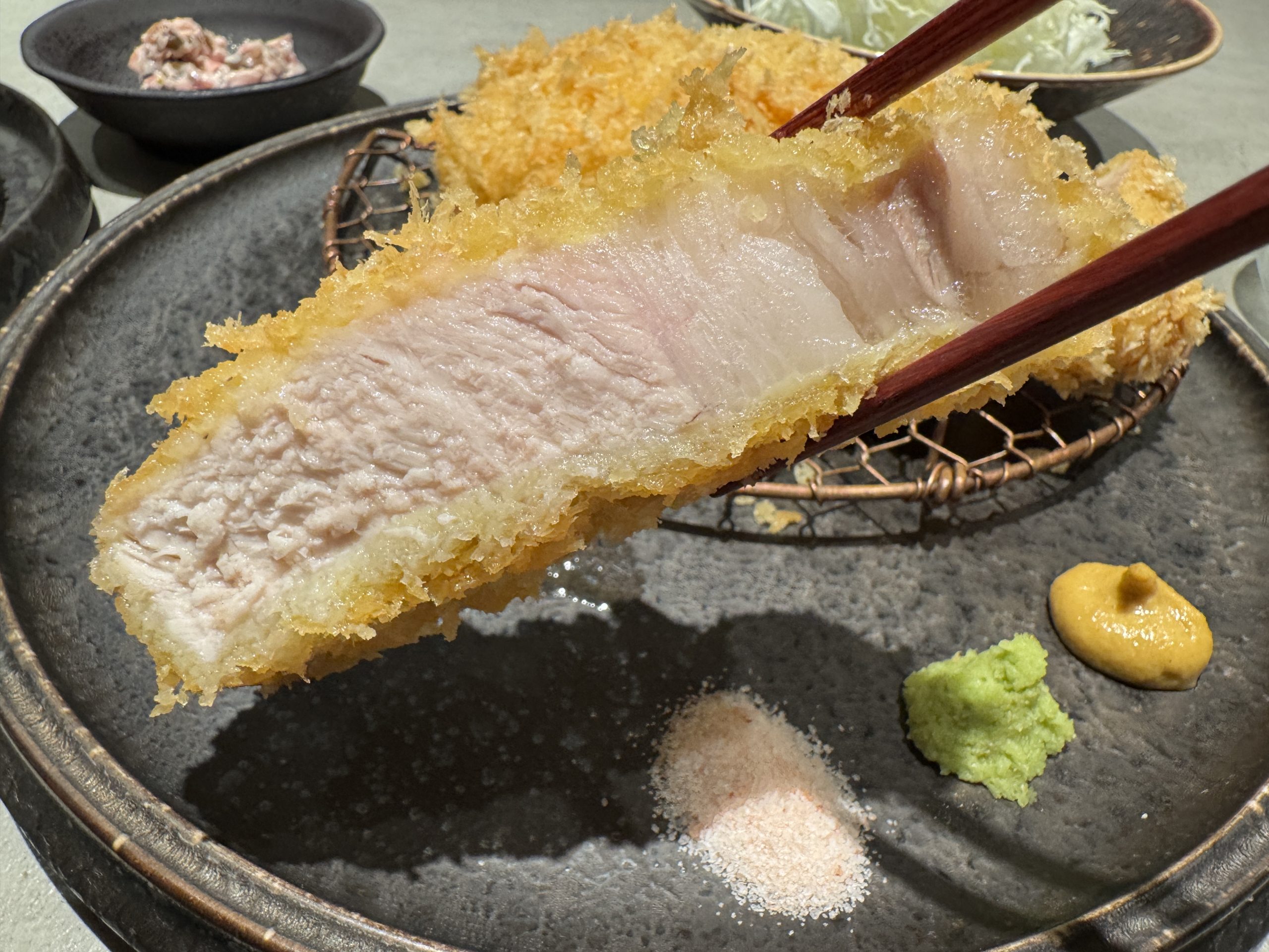 肉汁たっぷりで、とんかつと対極にある美味しさでした。