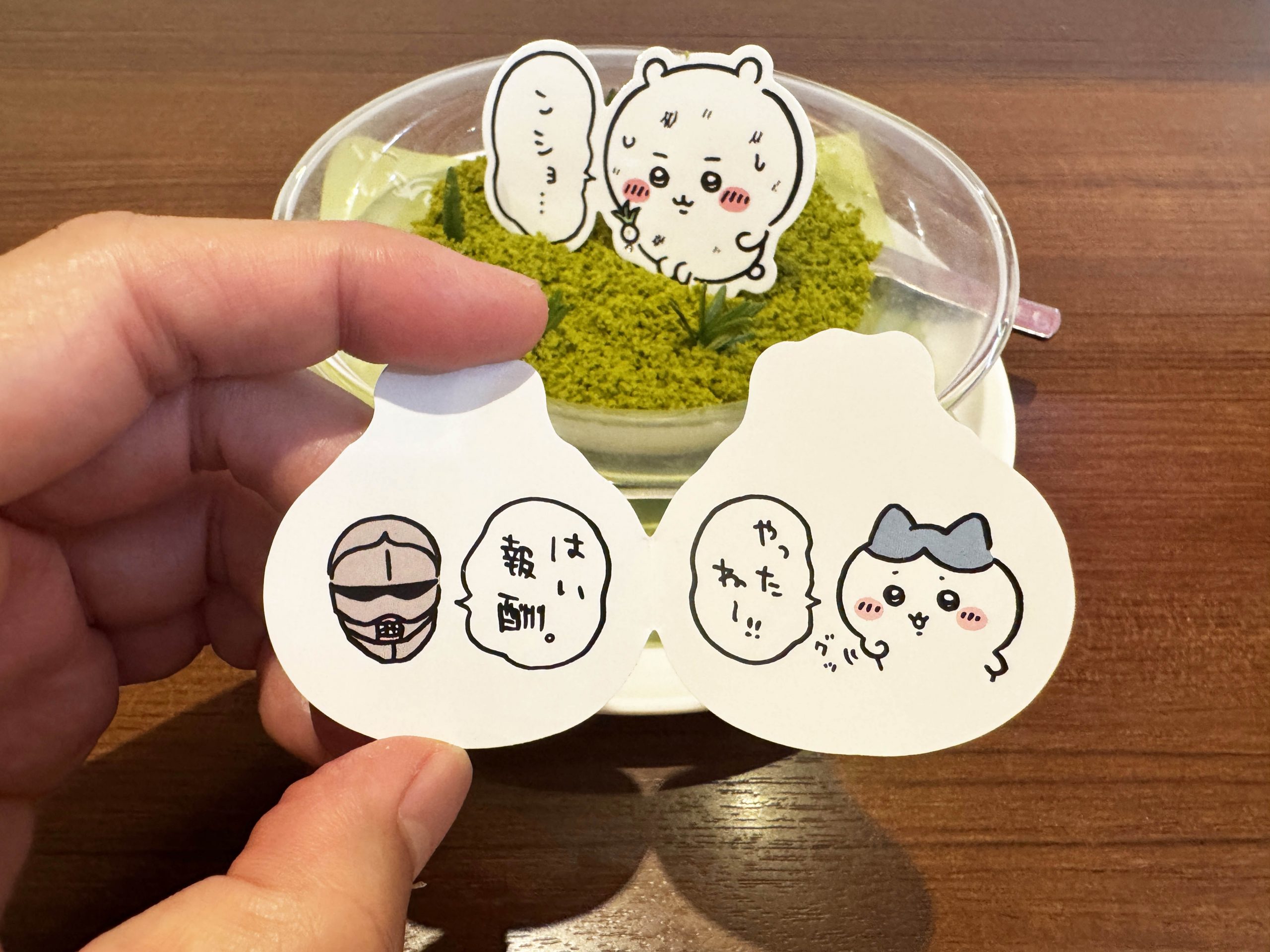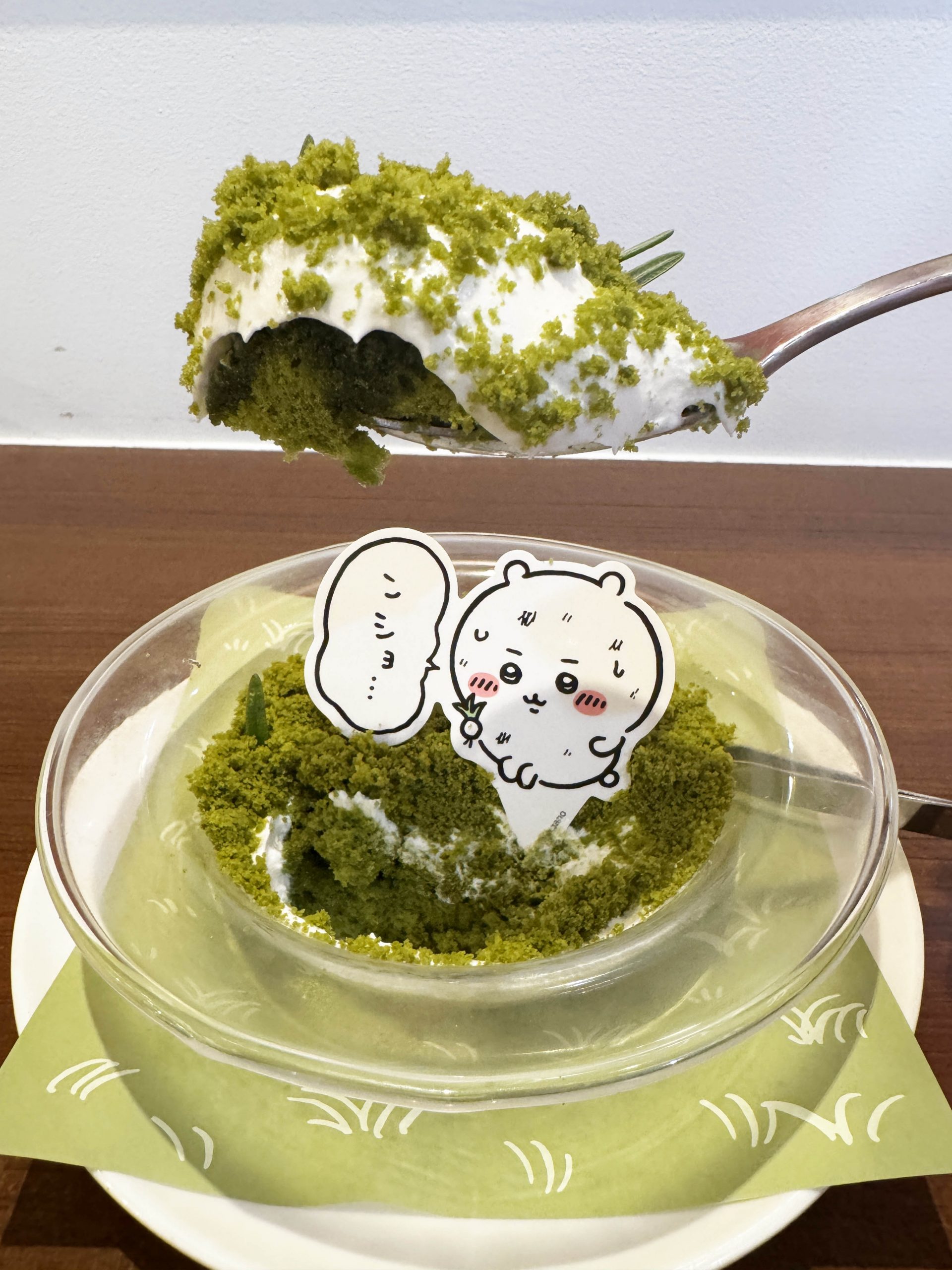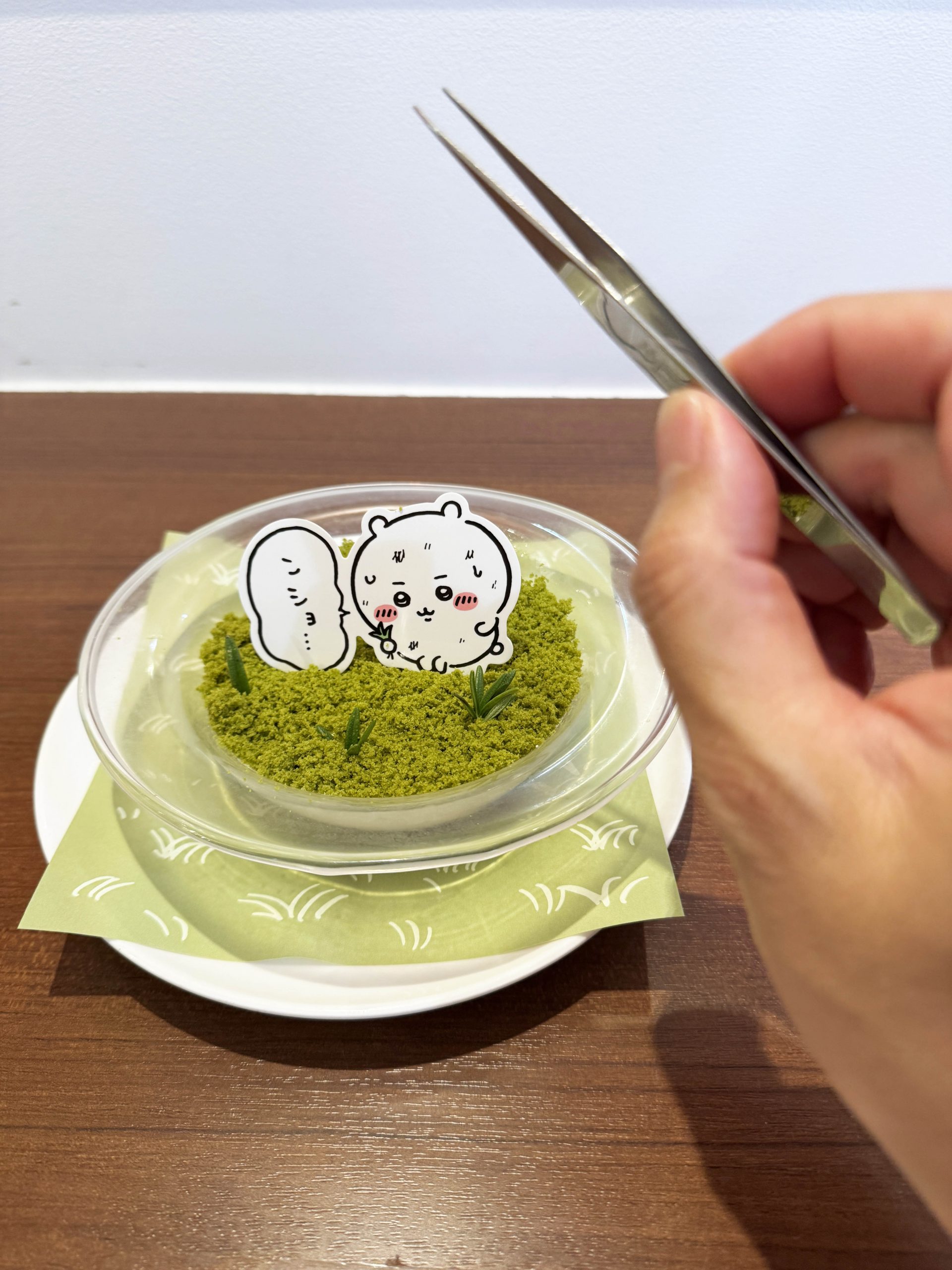 東京・池袋の「ちいかわレストラン」には、本当に草むしりができる「草むしりティラミス」があります。