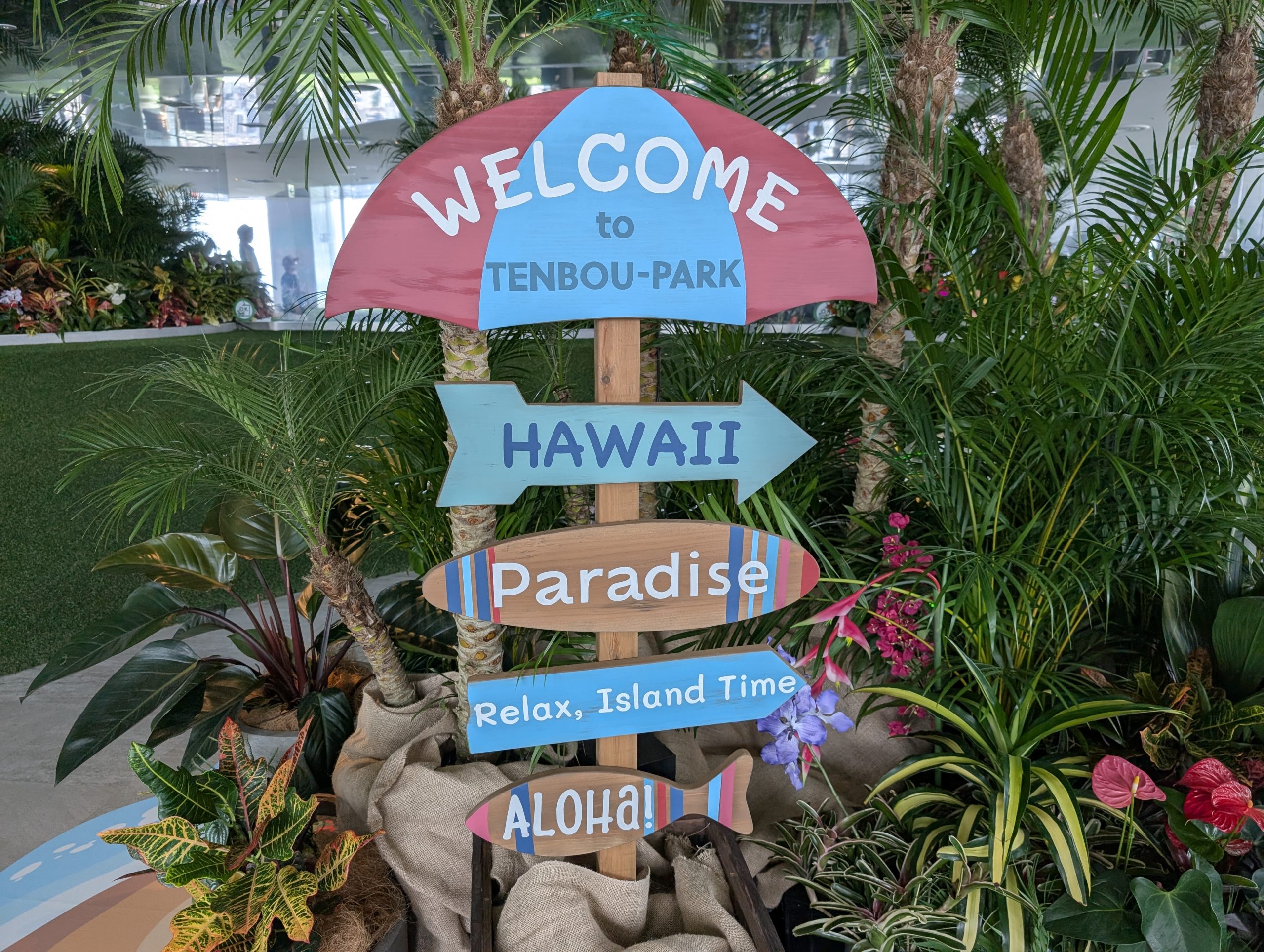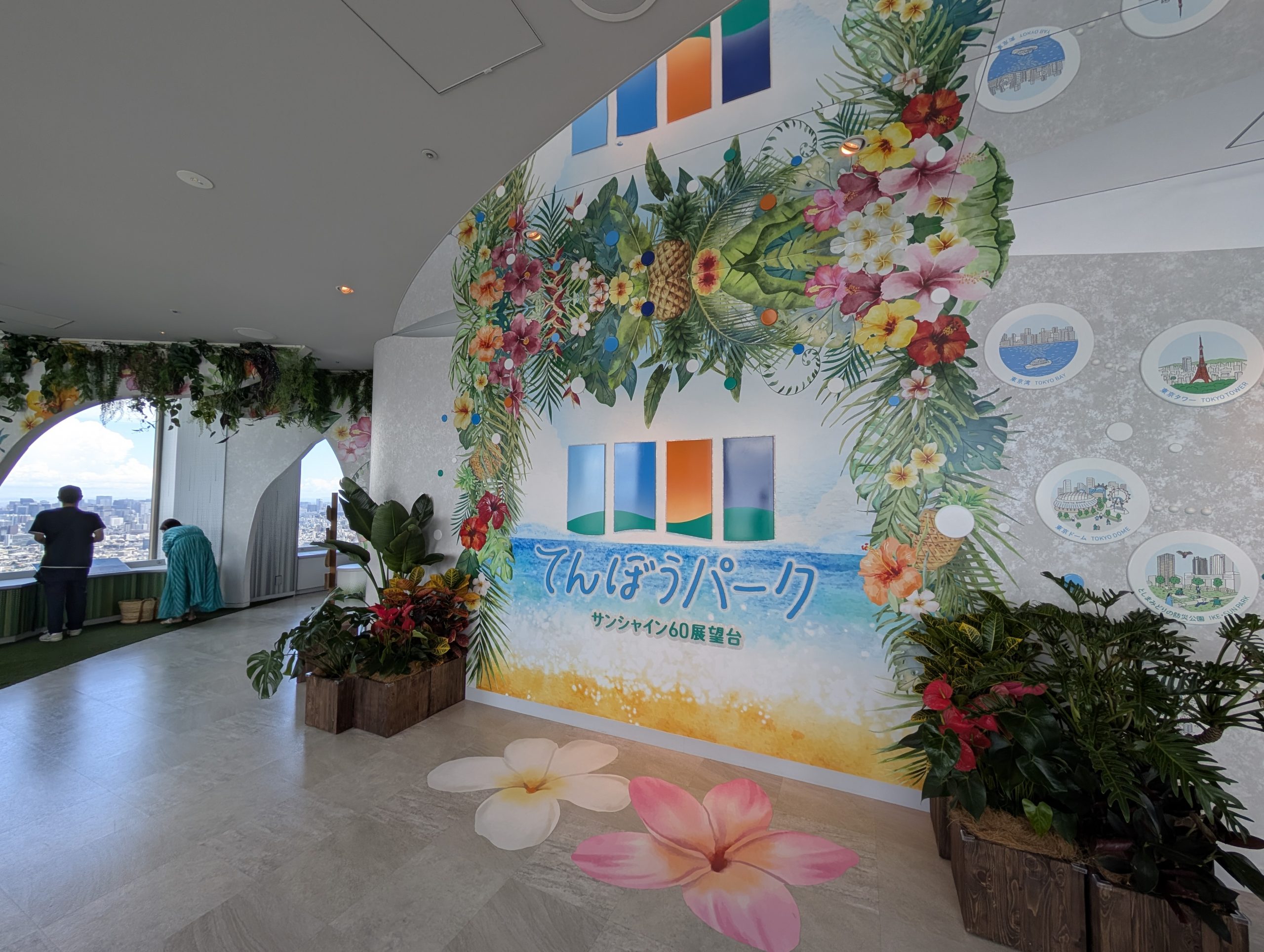ここ「サンシャイン60展望台 てんぼうパーク」は、東京・池袋の街並みを一望できる絶好のロケーションを誇る人気スポットです。夏の間だけ「都心で楽しく旅行気分♪」をテーマに、“ハワイ”の魅力を都内で気軽に体感できるイベントを開催中。円安などの影響で海外旅行の費用高騰が続く今夏、海外旅行気分を楽しめちゃうイベントでもあります。