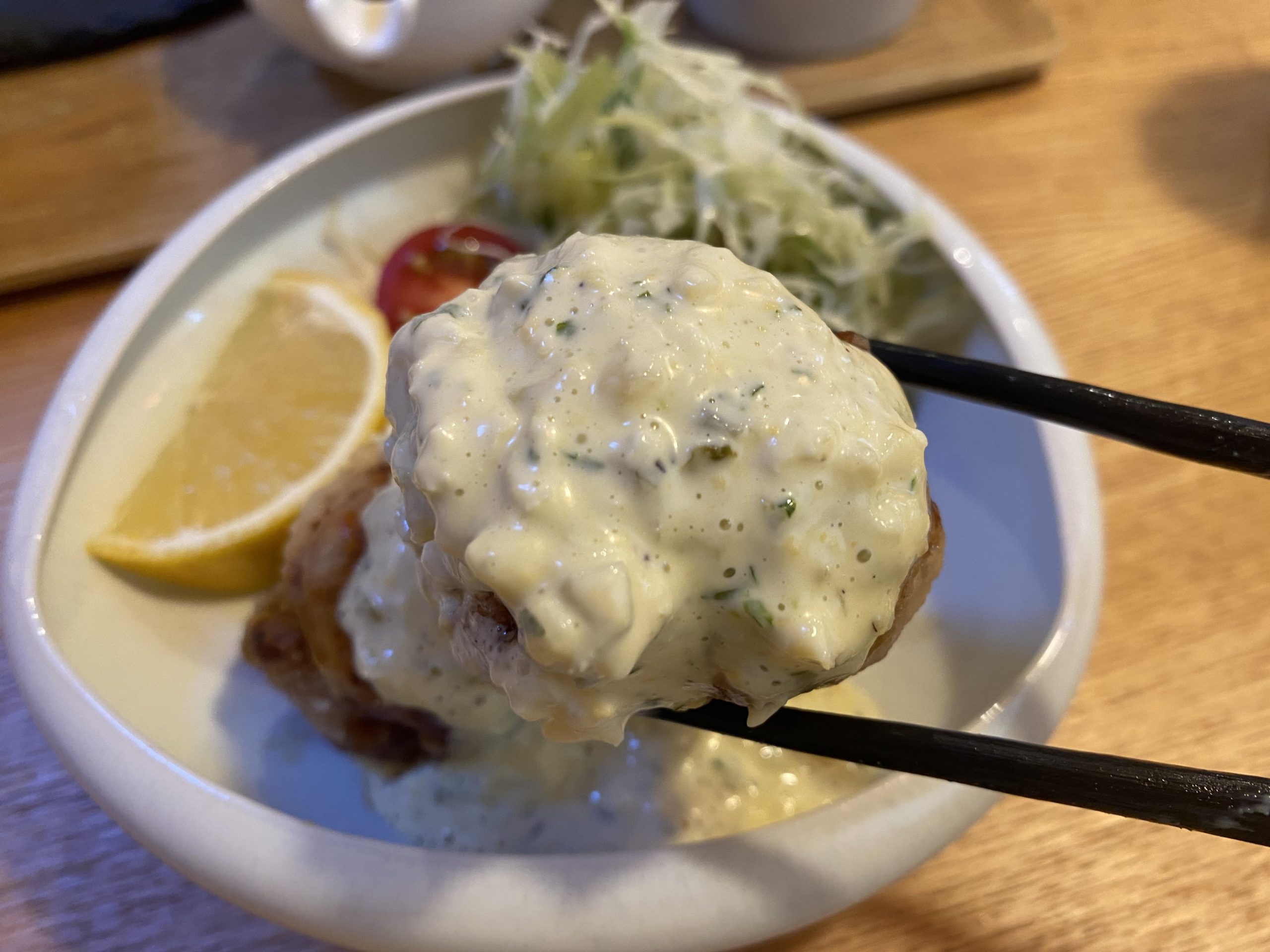 サクふわ食感からのジューシー感、甘酢とタルタルのバランスが絶妙。