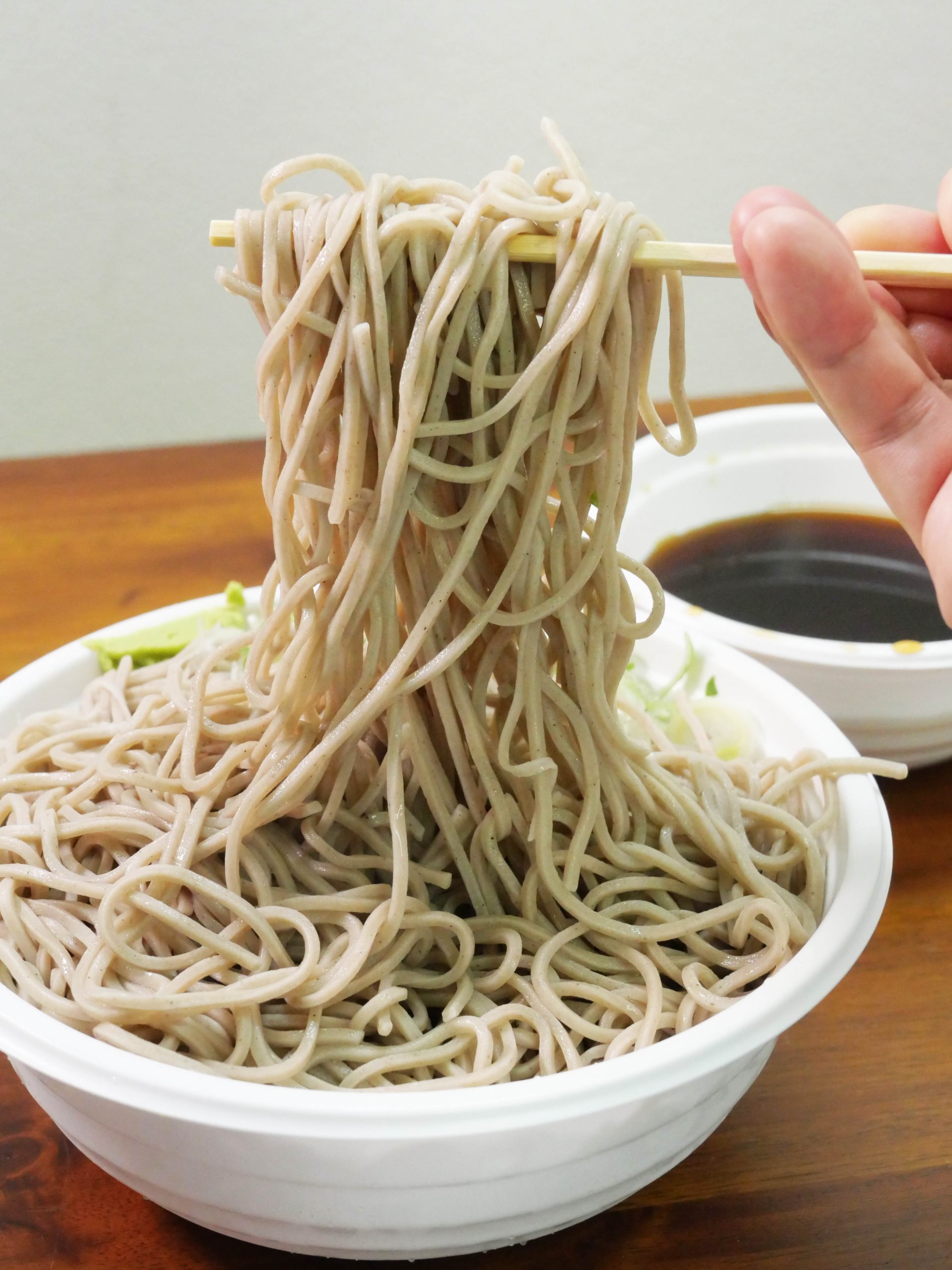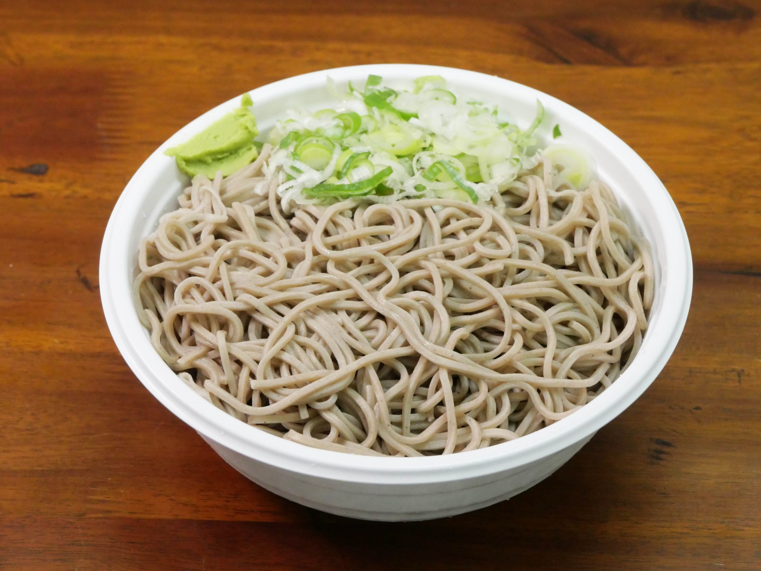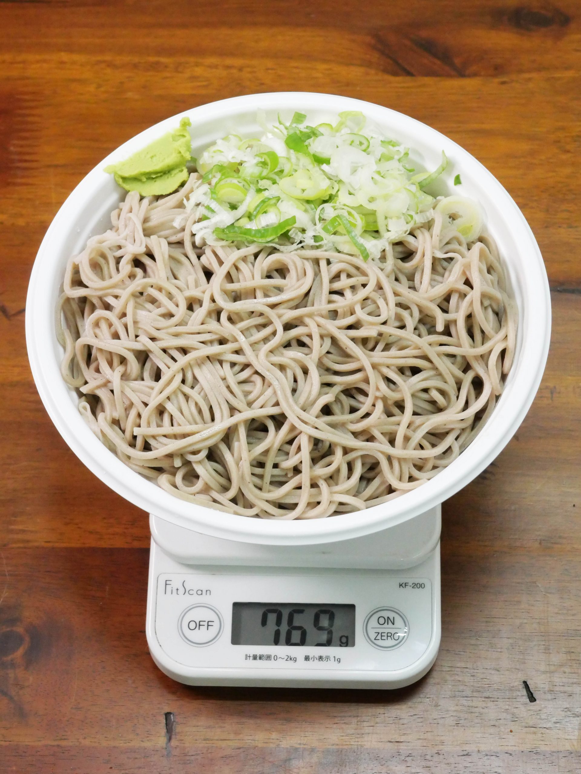 自由量を調べてみたところ、769グラムでした。あまりにもデカ盛りすぎます! 汁も具もないのに、そばだけで769グラム! 容器の重さを引いたとしても750グラム以上はあるでしょう。これは食べ応えがあります!