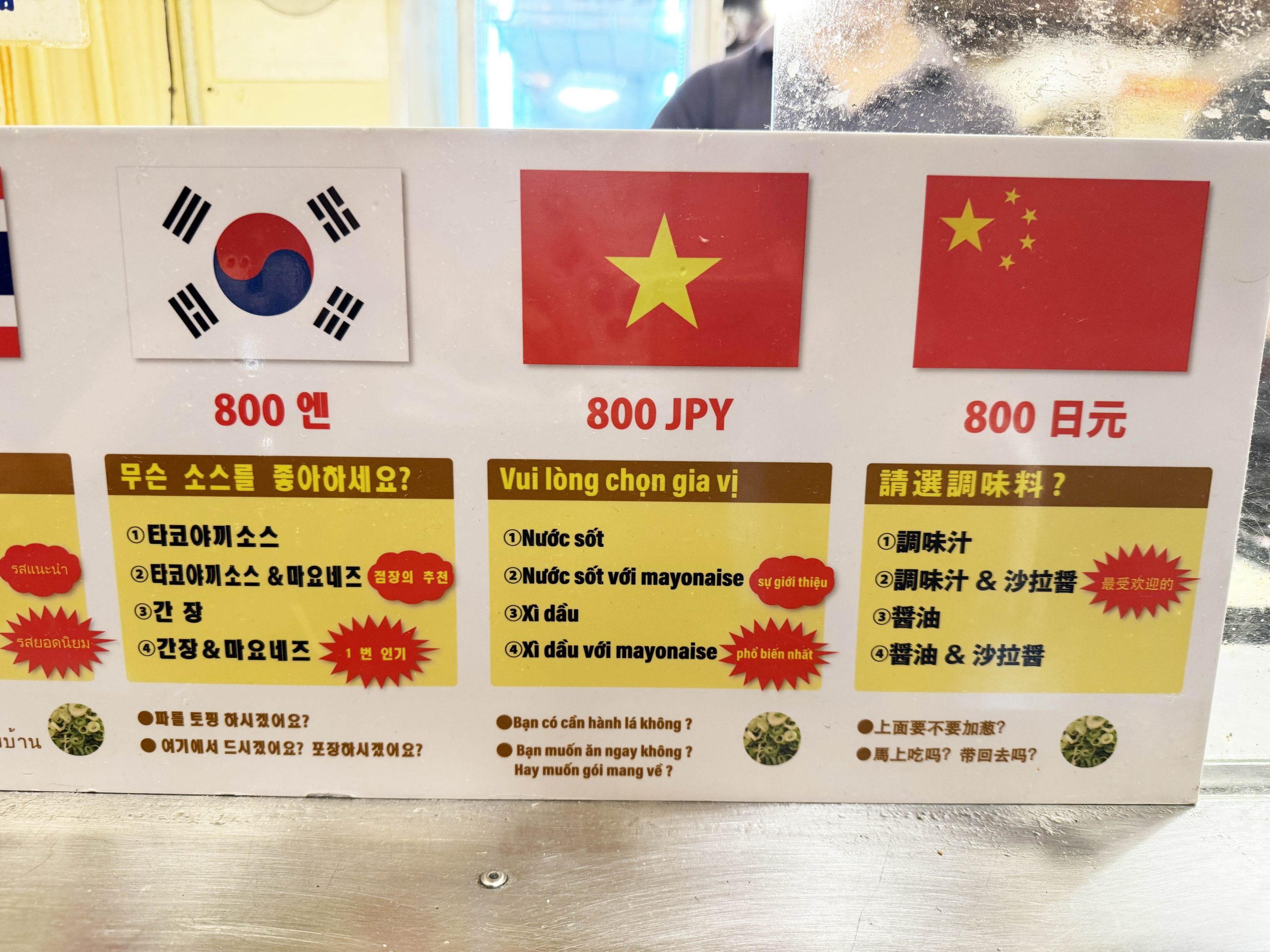 やはり外国人観光客が多いのか、さまざまな国の言語でメニューが書かれていた。