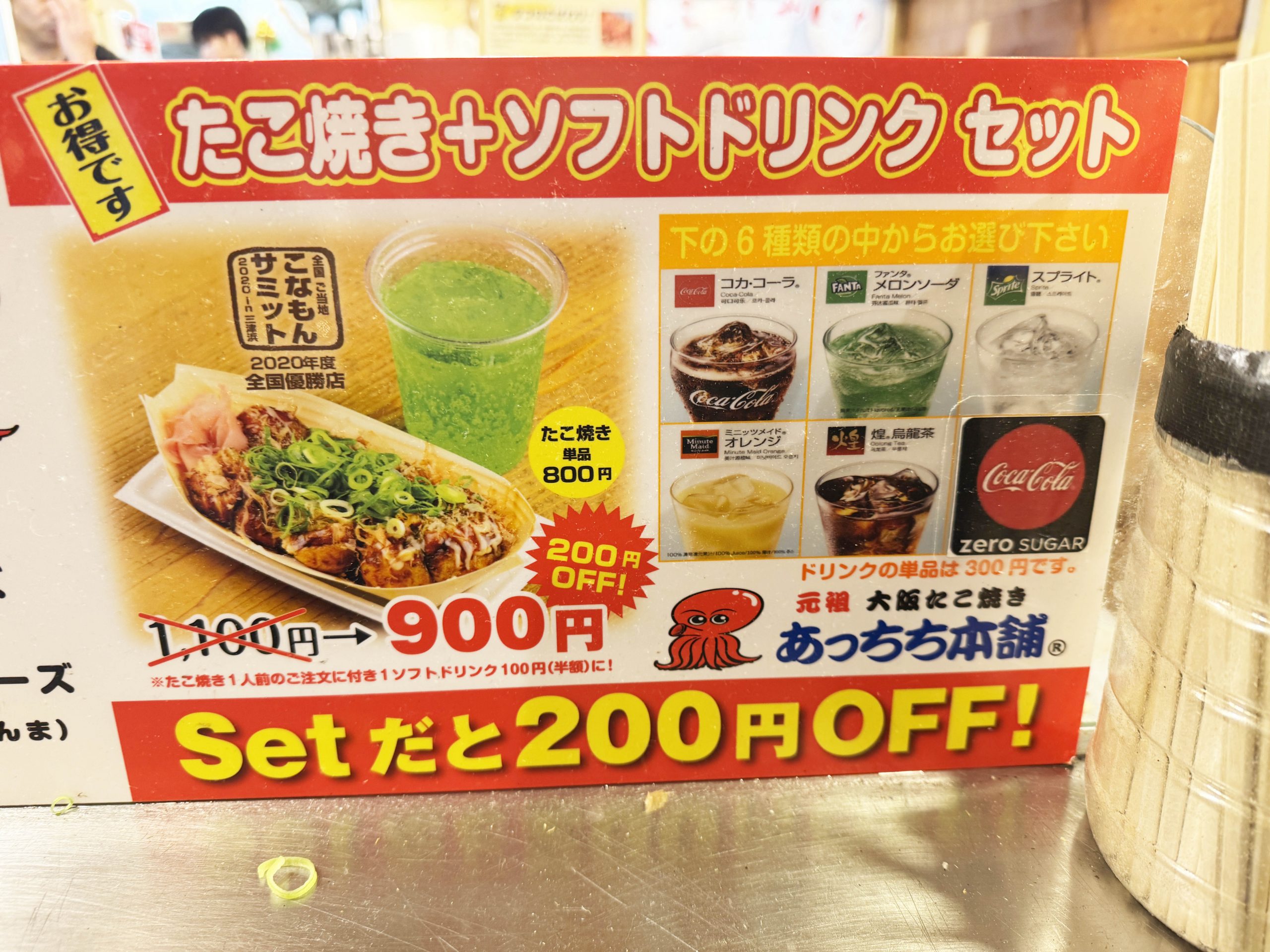 ソフトドリンクとたこ焼きのセットが人気っぽい。