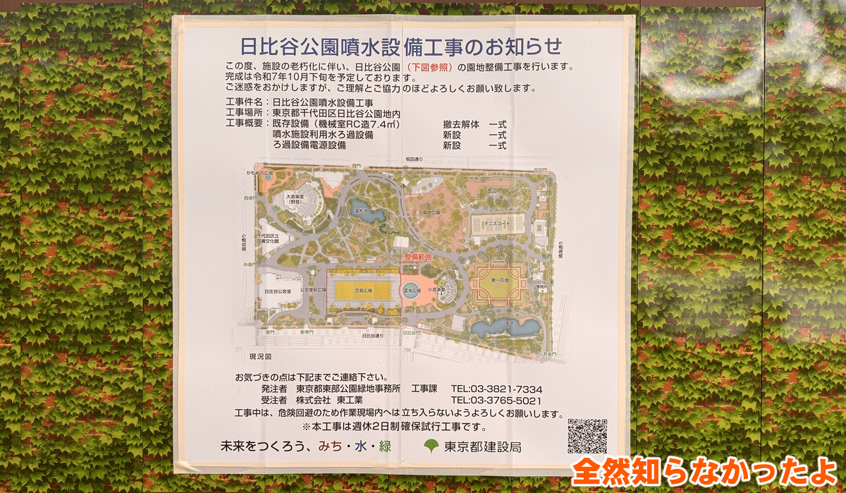 日比谷公園噴水広場準備工事のお知らせ:公益財団法人 東京都公園協会