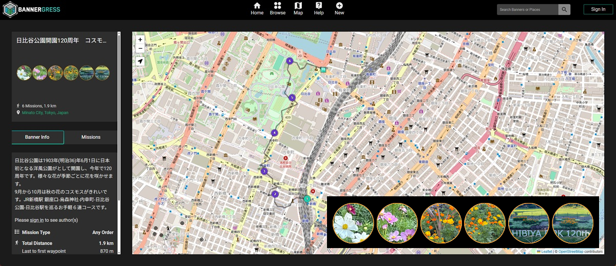 短時間でかつある程度の撮れ高のあるミッションはないかと検索していて出会ったのが“日比谷公園開園120周年 コスモス花壇”という6連のミッションだ。