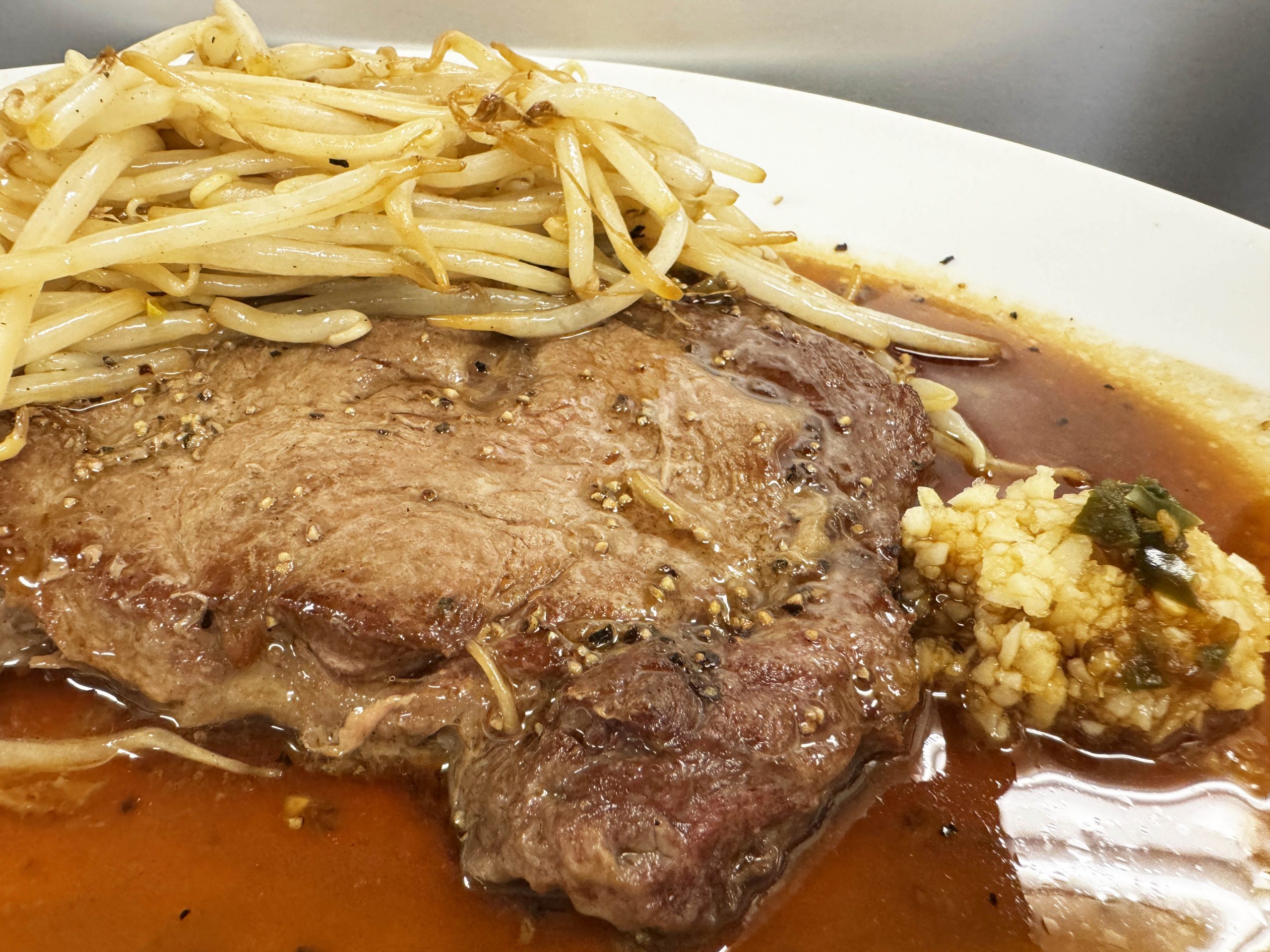 ステーキとモヤシの双方が米のおいしさをガツーンとブチ上げ