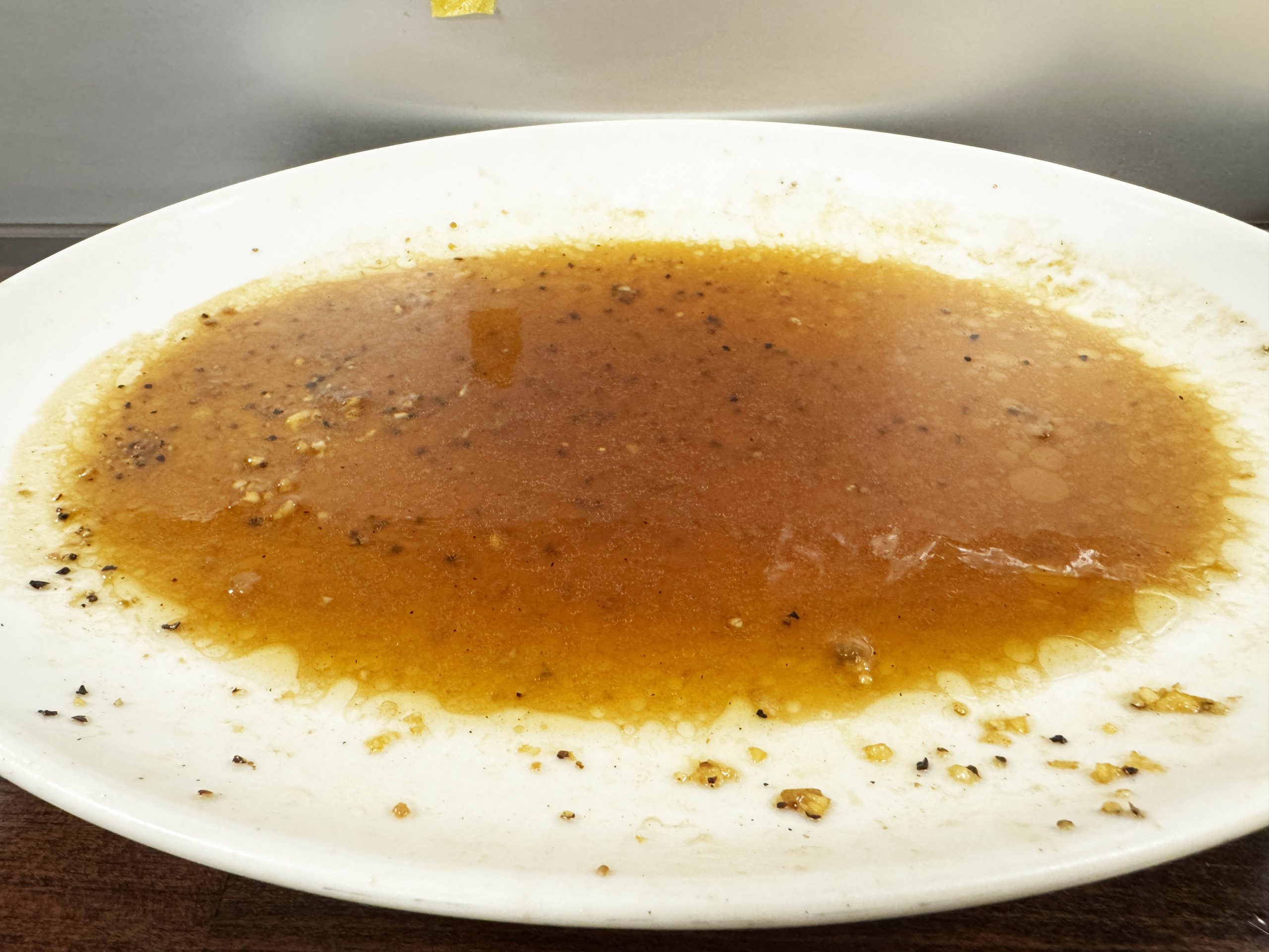 そして、ステーキとモヤシを食べ終え、残った汁にも着目したい。この汁が実にウマイ。汁を米にかけつつ食べてみてほしい。飛ぶぞ!