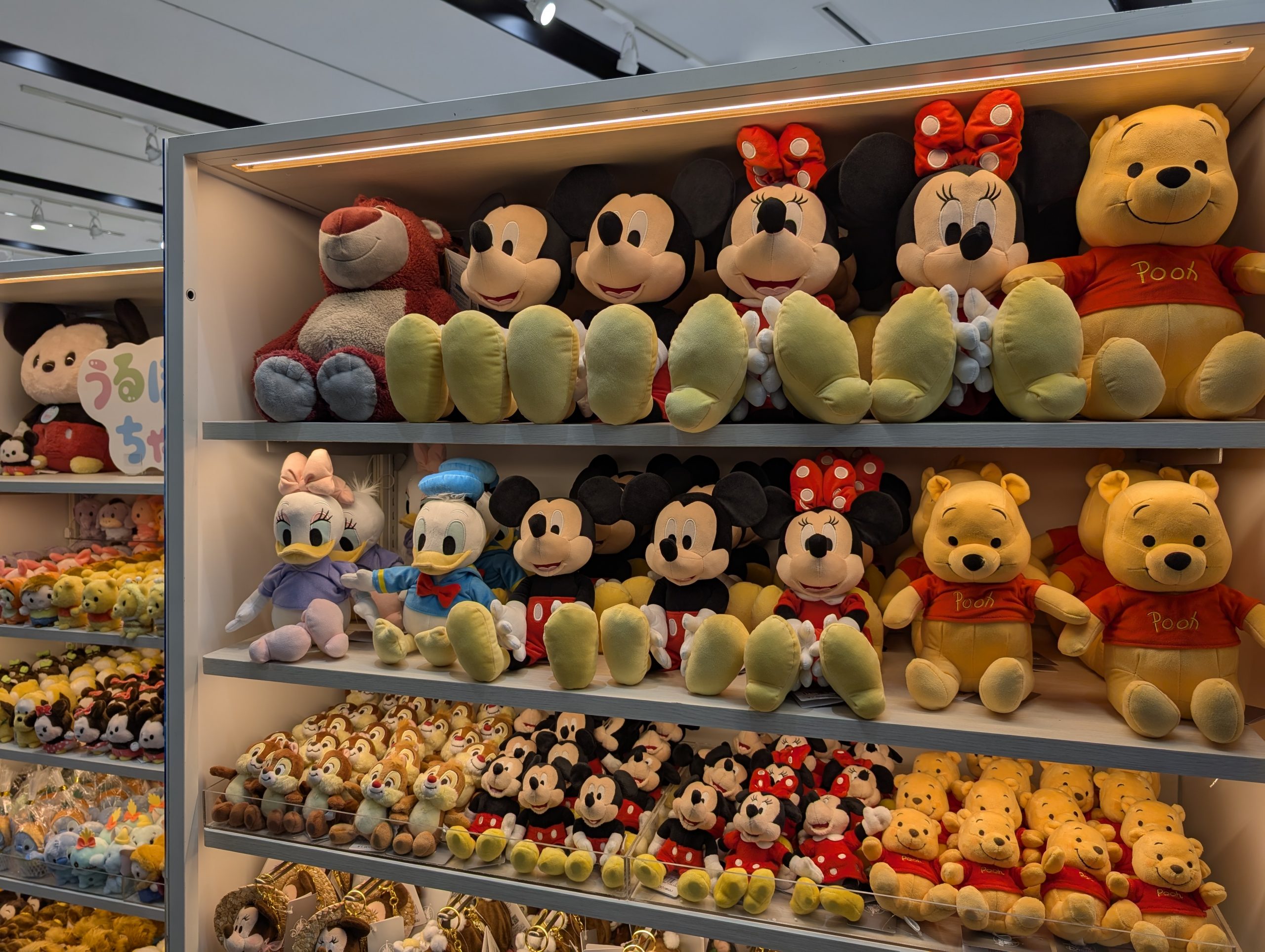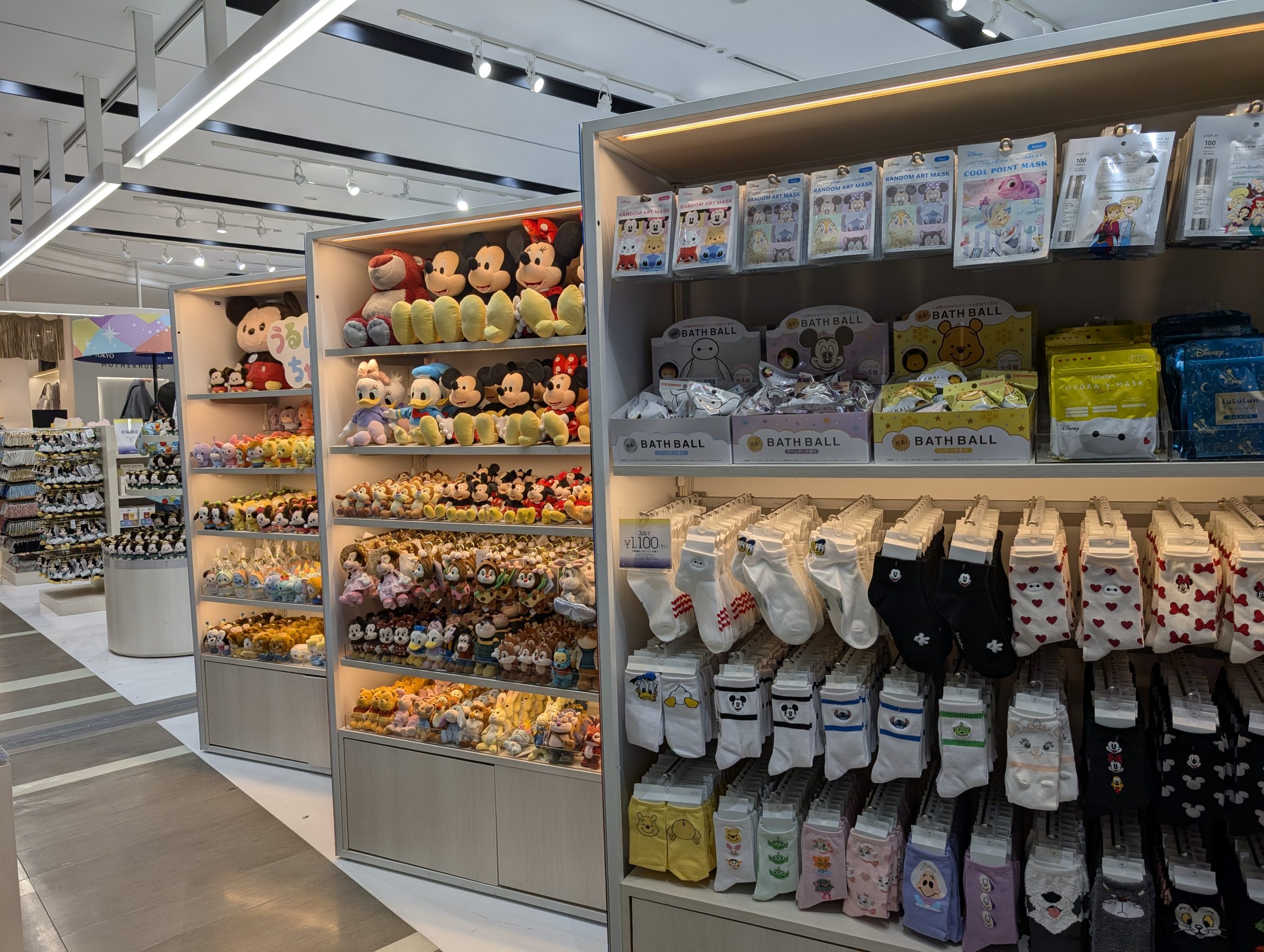 ここでは成田空港でしか購入できないキーチェーンやトートバッグなどの限定アイテムに加え、ジャパンツアー限定アイテムやディズニーストアの最新アイテムまで取り揃えています。