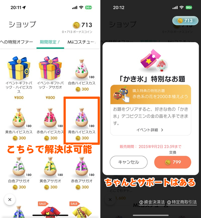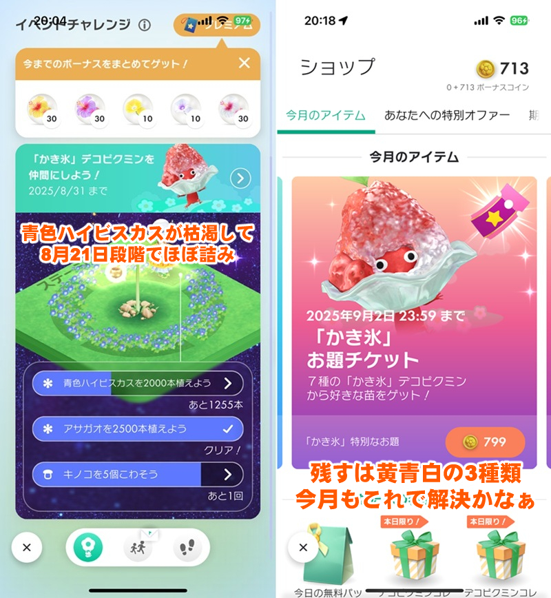 そこで期待値の届かず困っているひとに歩く意欲と背中を押す施策があれば……と、今日も今日とて青色ハイビスカスに苦しみ、かき氷デコのコンプリートが絶望的になってきた筆者のボヤきでした。