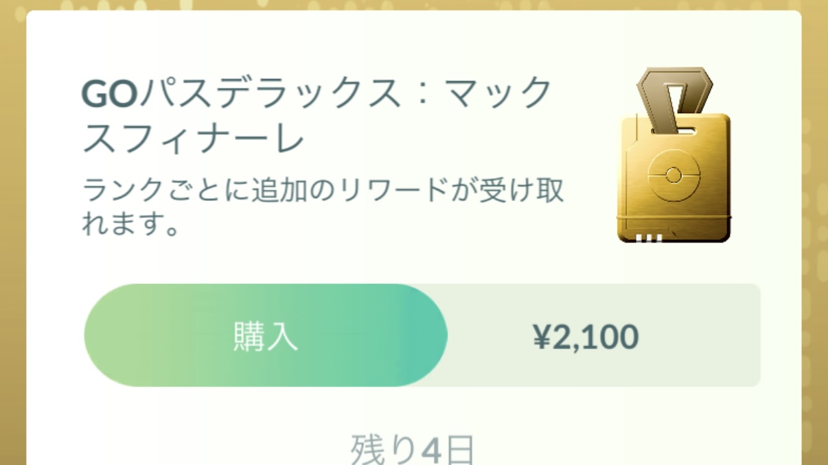 正直700円の差のメリットは無く、その分をマックス粒子などに課金した方が有意義なので、今からGOパスを購入する場合は2100円の方を選べばOKです。