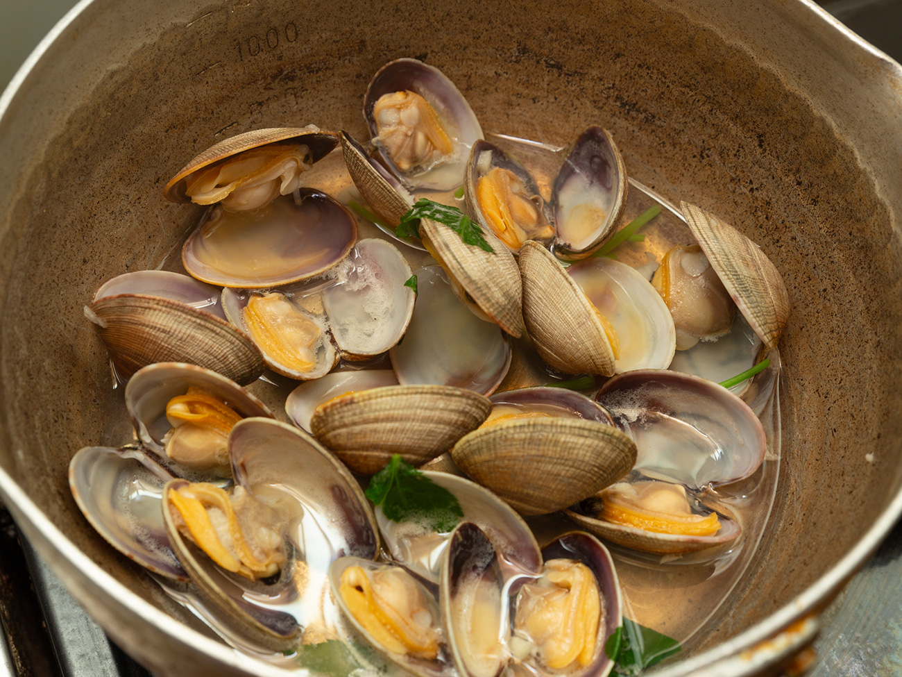 まずはアサリの酒蒸しから検証。AI味覚センサー「レオ」で解析する前に、実際に食べ比べもしてみることにしました。