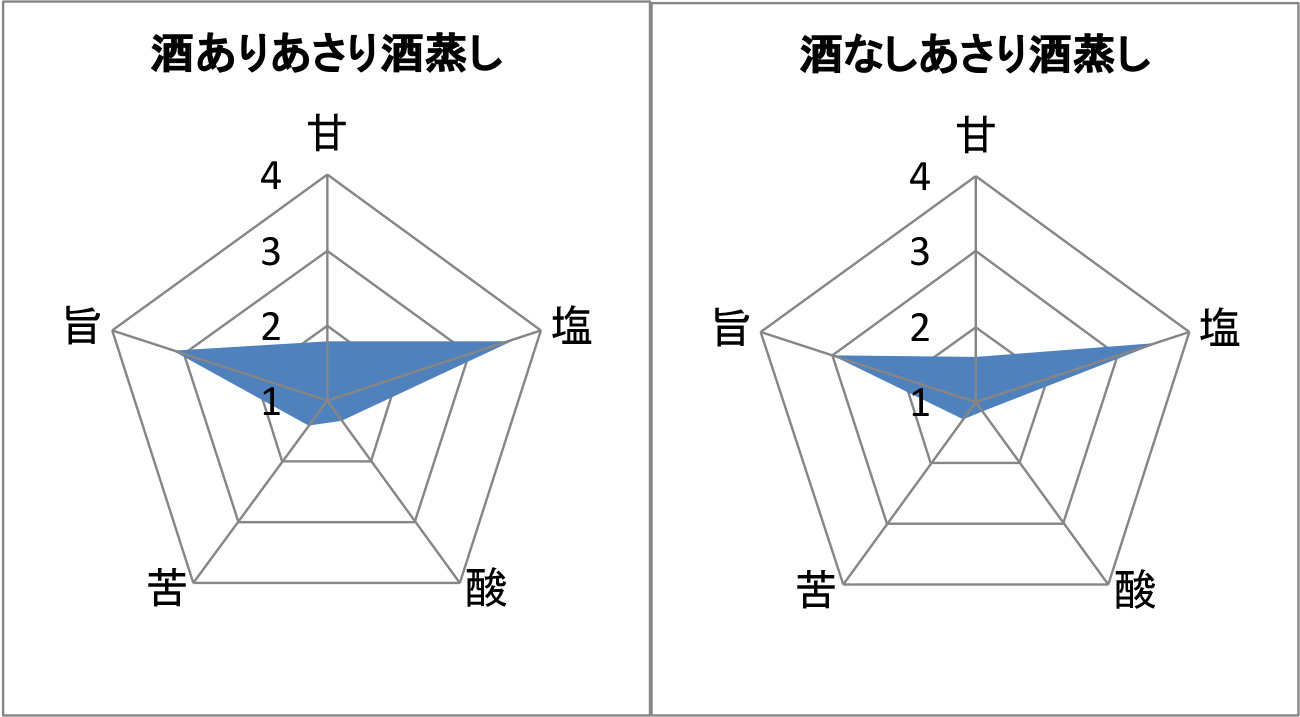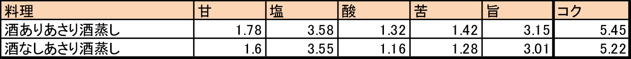 酒あり・酒なしで作ったアサリの酒蒸しの解析結果は以下のようになりました!