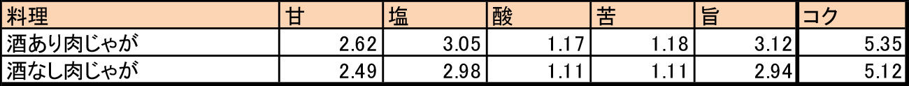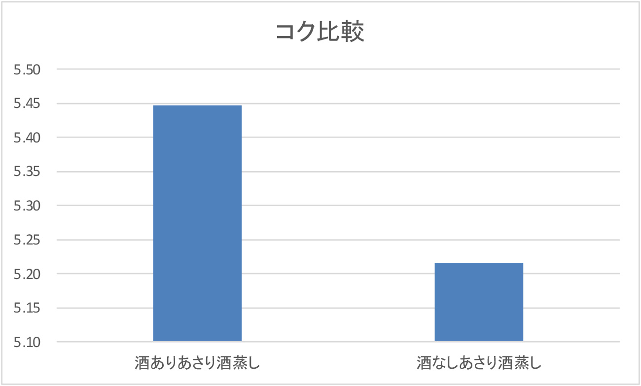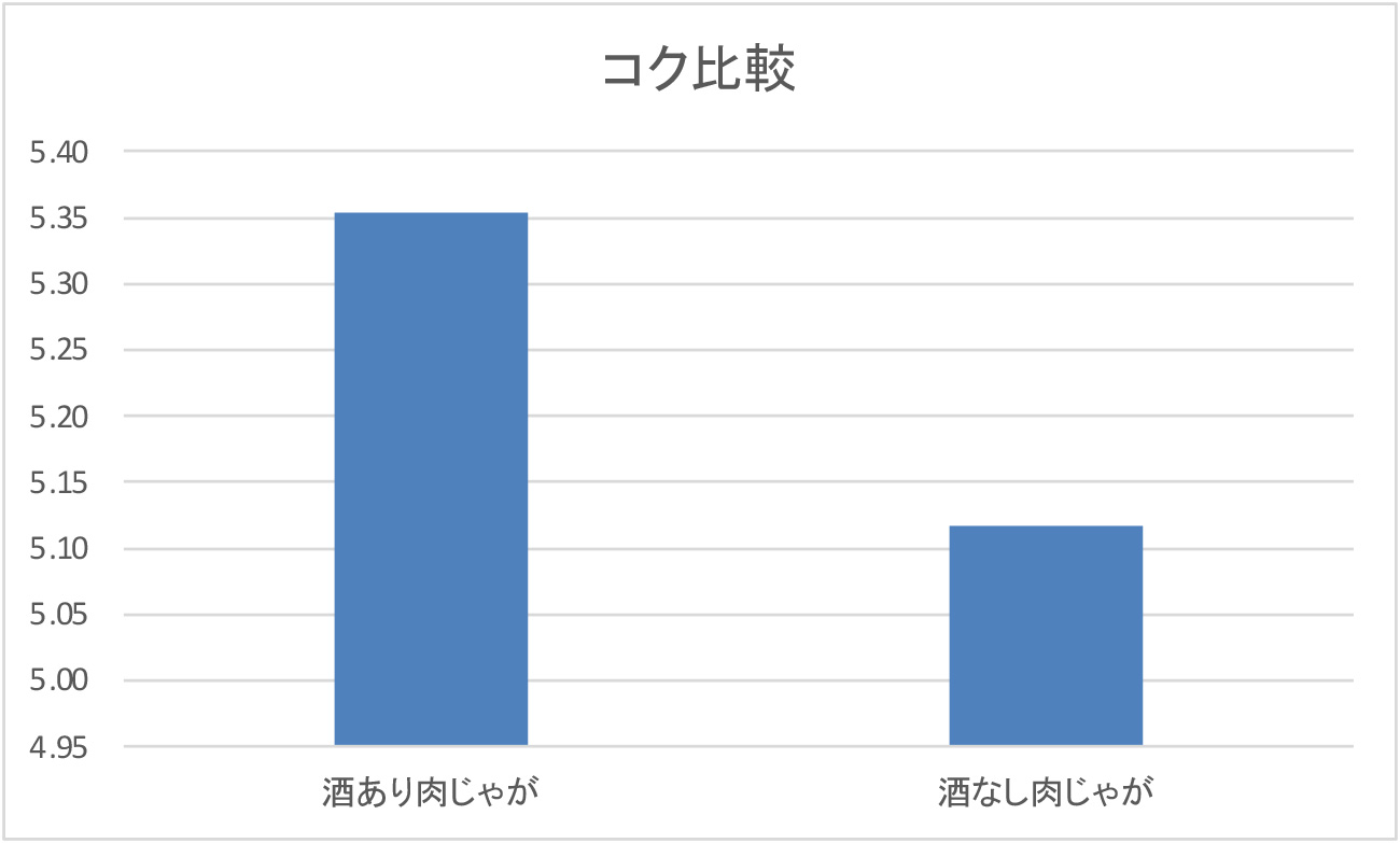 やはり酒ありバージョンは「コク」がアップ! 食べ比べで感じたとおり、総合的に味に厚みが出ていることが数値でも明確に現れました。