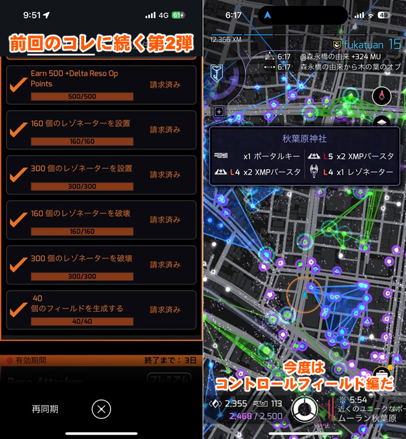 要するに先日(8/3)までレゾネーターの設置や破壊に挑んだ“+Delta Campaign:Reso”のコントロールフィールド版といったところ。