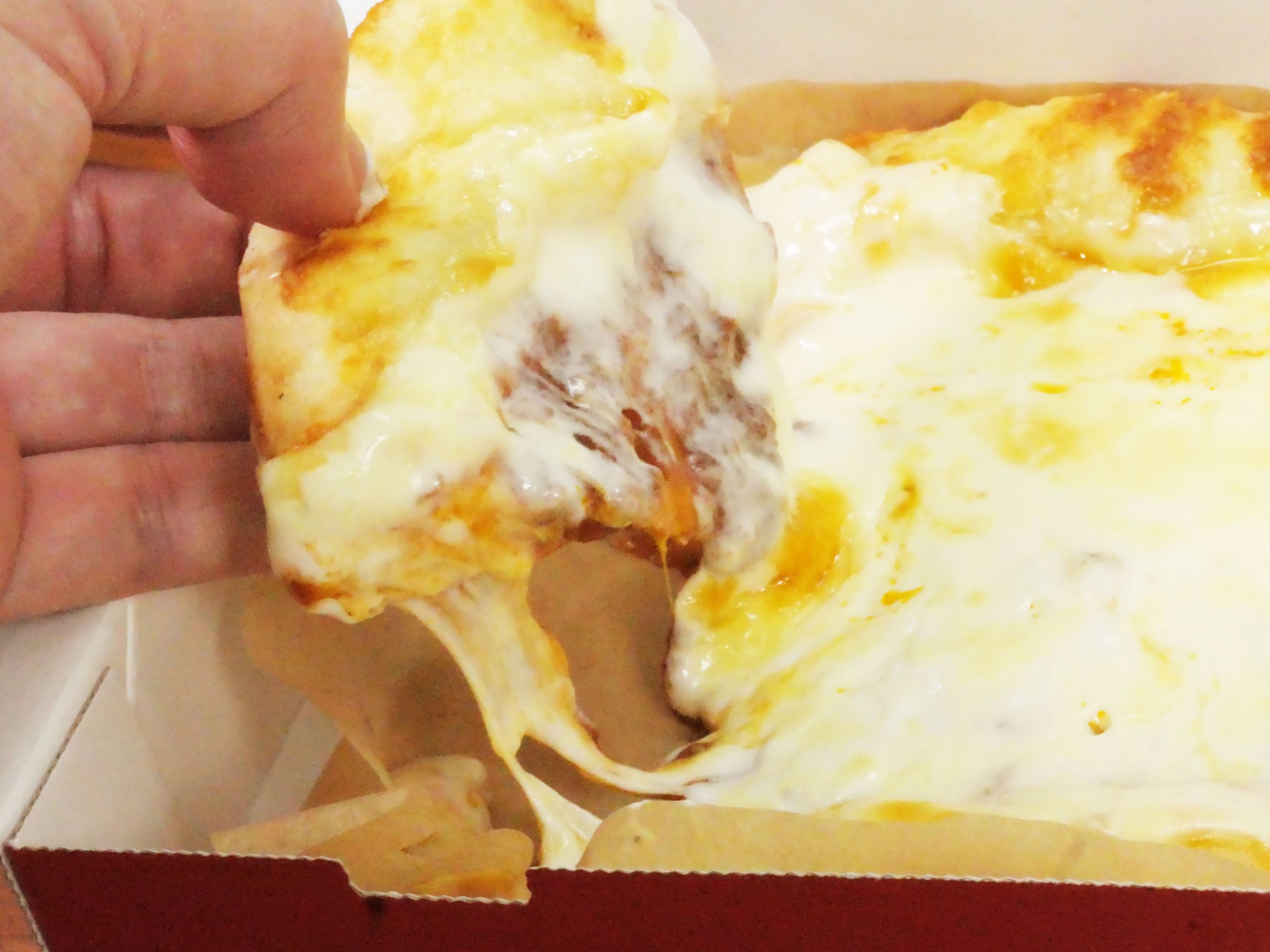 実際にオーダーすればわかるが、もはや、ビジュアルの時点でギルティ、いや、メルティ。想像を絶する勢いでドロドロのトロトロであり、比類なきとろけるチーズっぷり。「飲めるピザ」という名称である理由が理解できる。