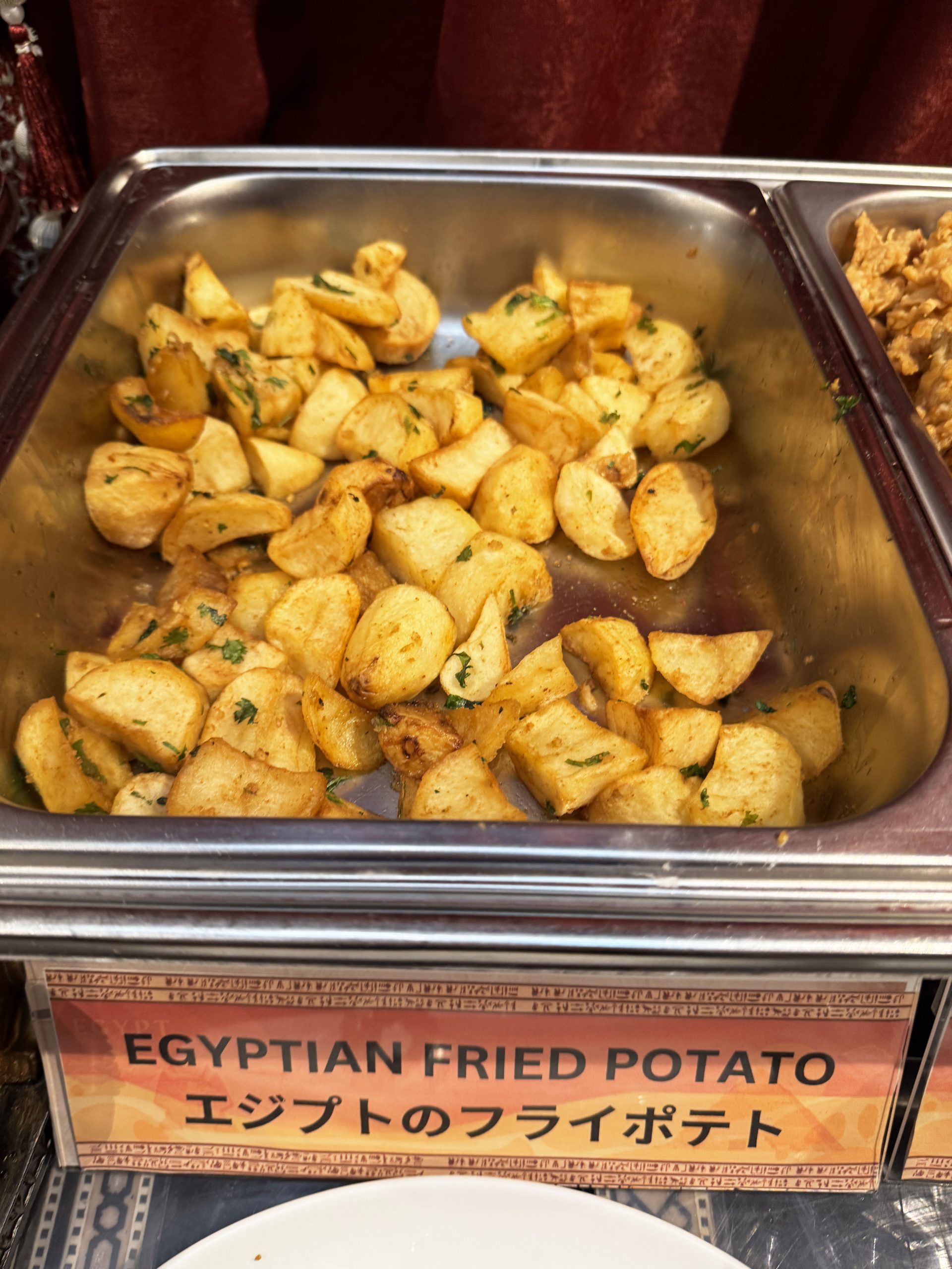 エジプトのフライポテトも実に興味深い。ハーブ的なエッセンスによってエジプトテイストに仕上がっている。いい、こういう、日常的にあるグルメが、予想もしない国のテイストに仕上げられたグルメ。