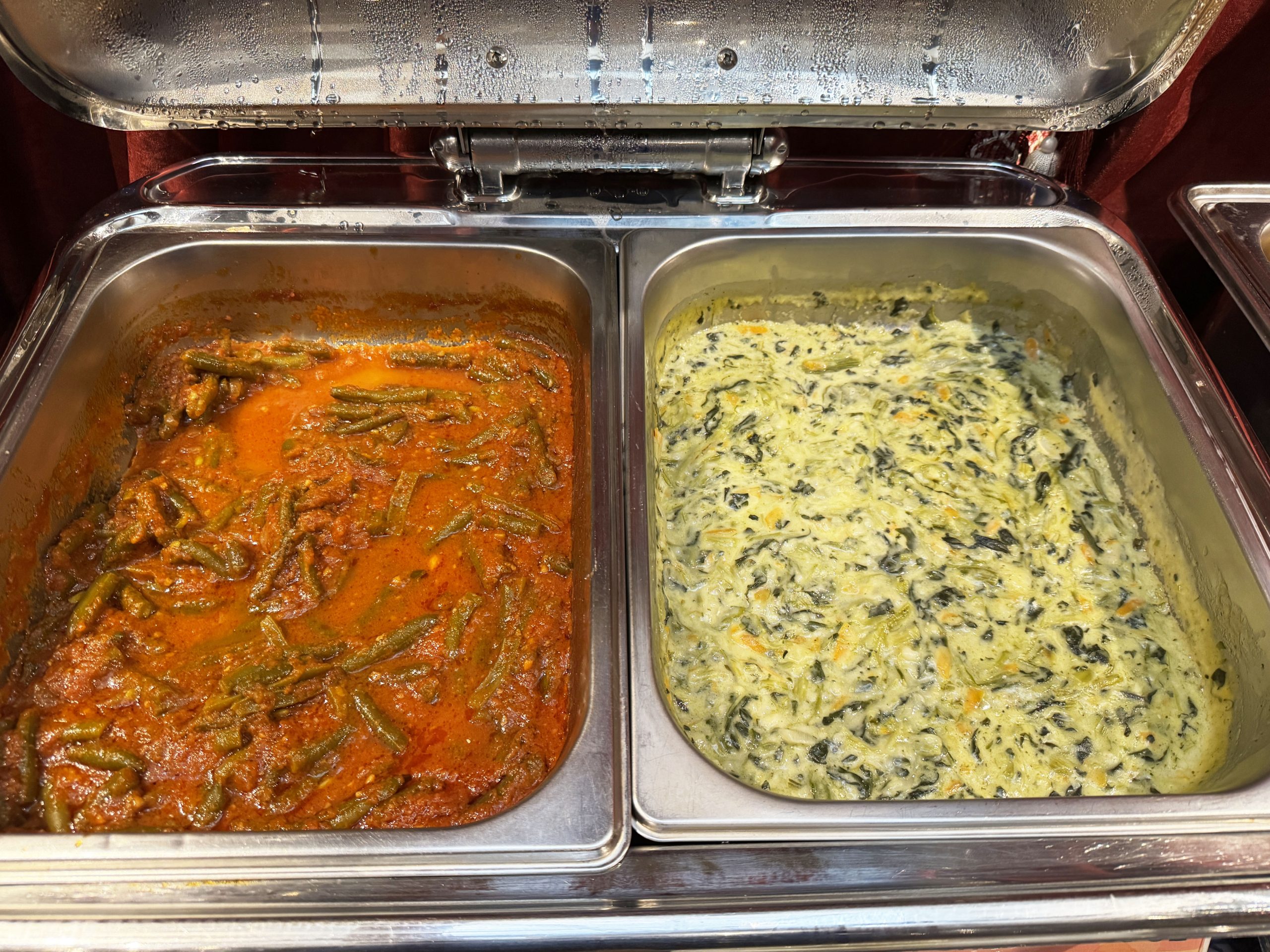 ダウットバシャというミートボールのトマトソースあえ、キャラメリゼしたタマネギとビーフカバブハラ、どちらも知らない食べ物だった。