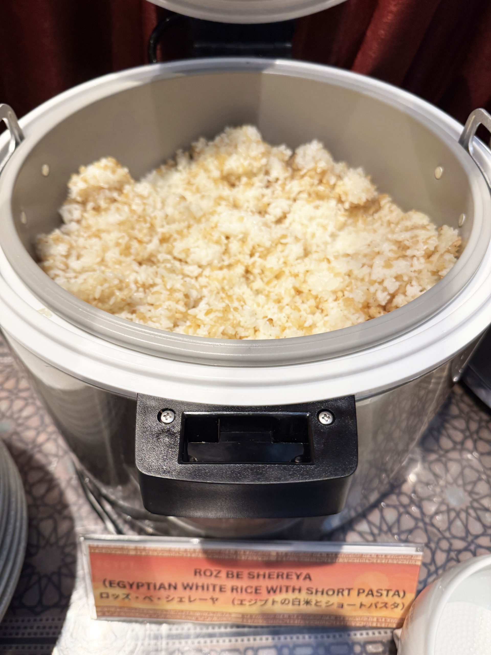 ライスとパスタを混ぜ合わせた、コシャリの前駆体ともいえる穀物を食べることも可能。これは嬉しい。エジプトのコシャリ的な味付けにして食べたくなる。