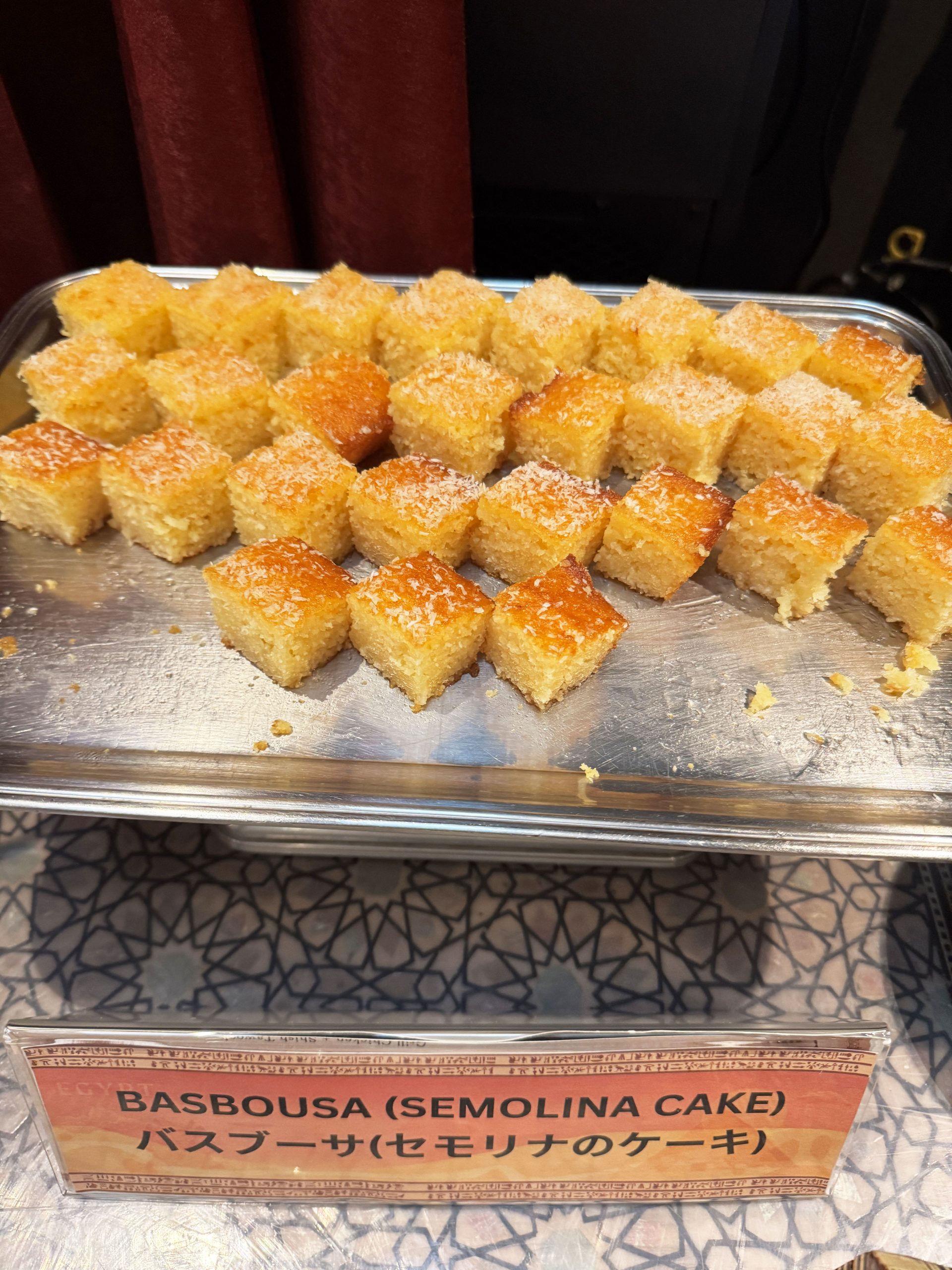 スイーツもある。小さいけど、甘さは超絶MAX。エジプトらしいスイーツと言えるかもしれない? これをつまみながら飲むお茶はステキ。