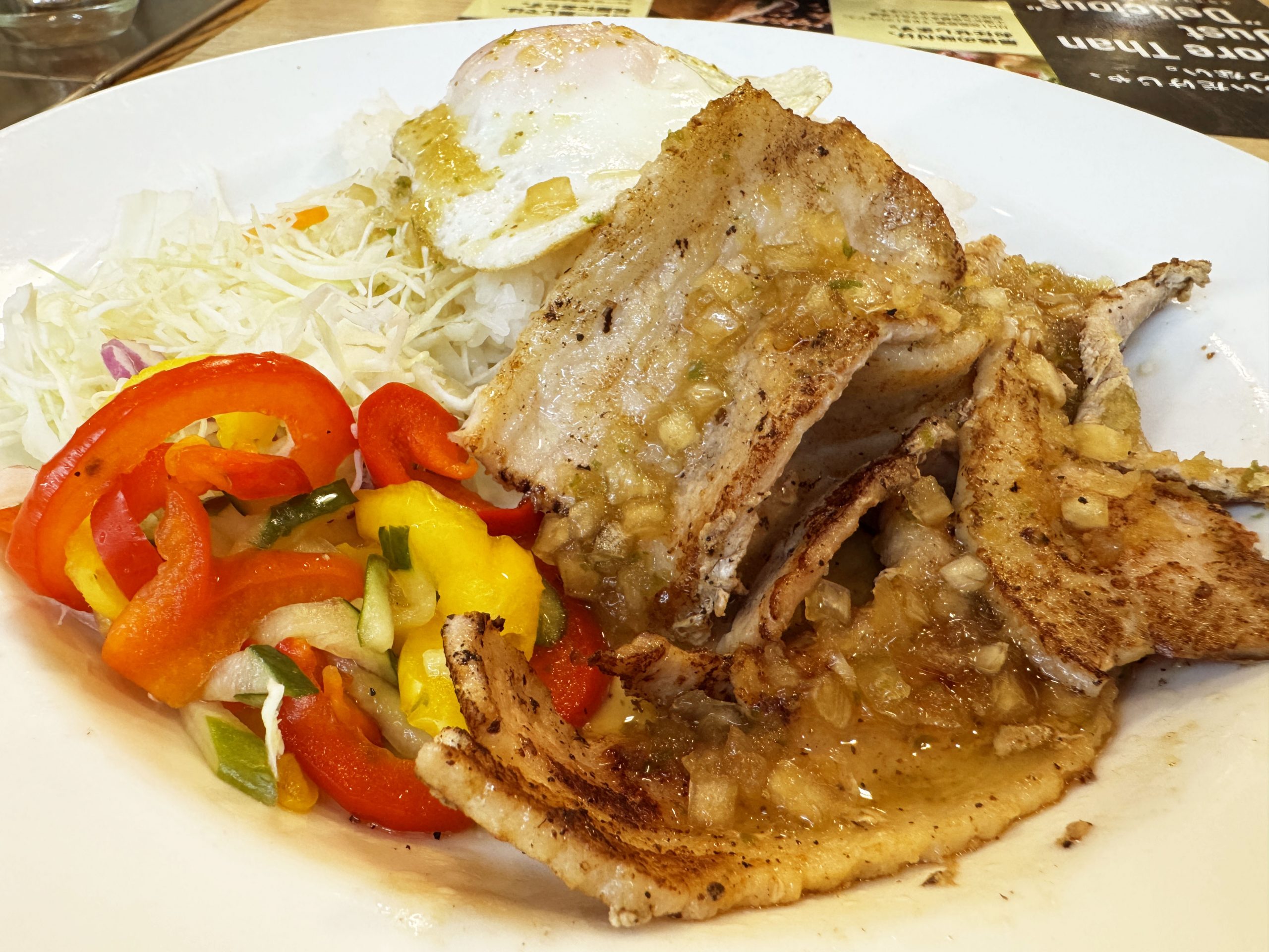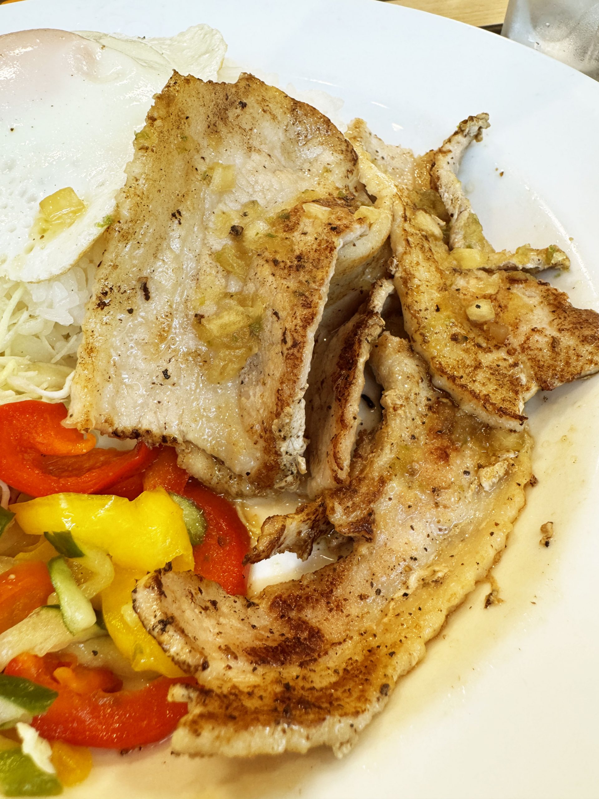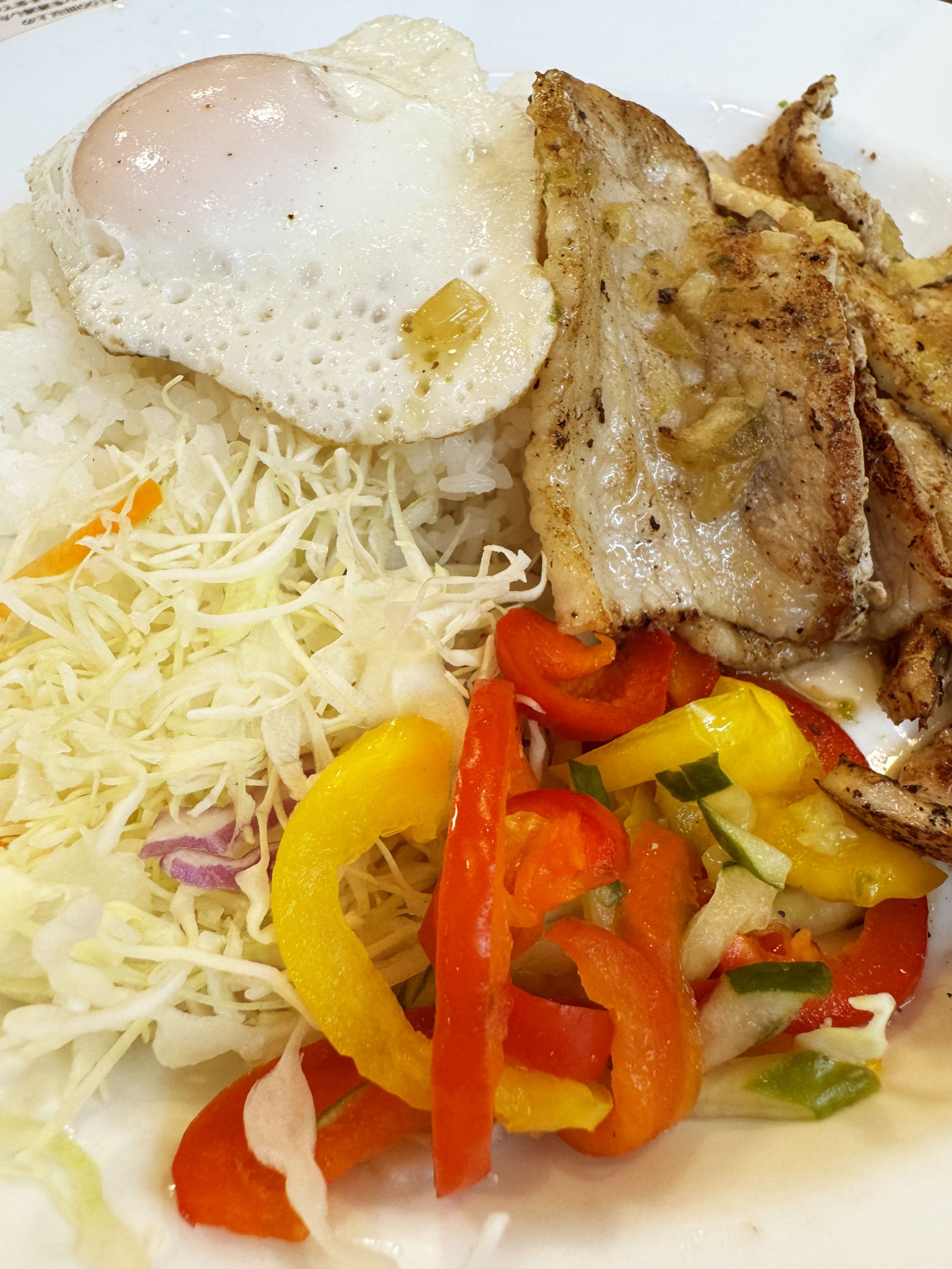 いいかい学生さん、ヌクマムソースをかけたコムタム風ポークライスをな、ライスにワンバウンドさせて食いなよ。