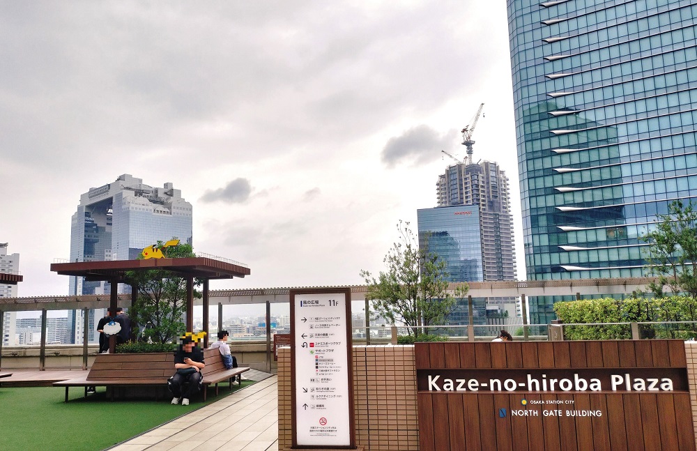 ▲エスカレーターを抜けた先にある屋上広場。梅田北側の街が一望できる